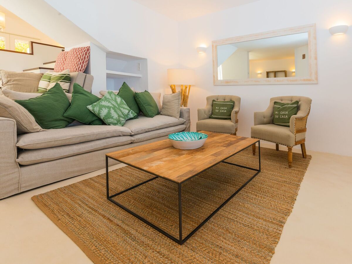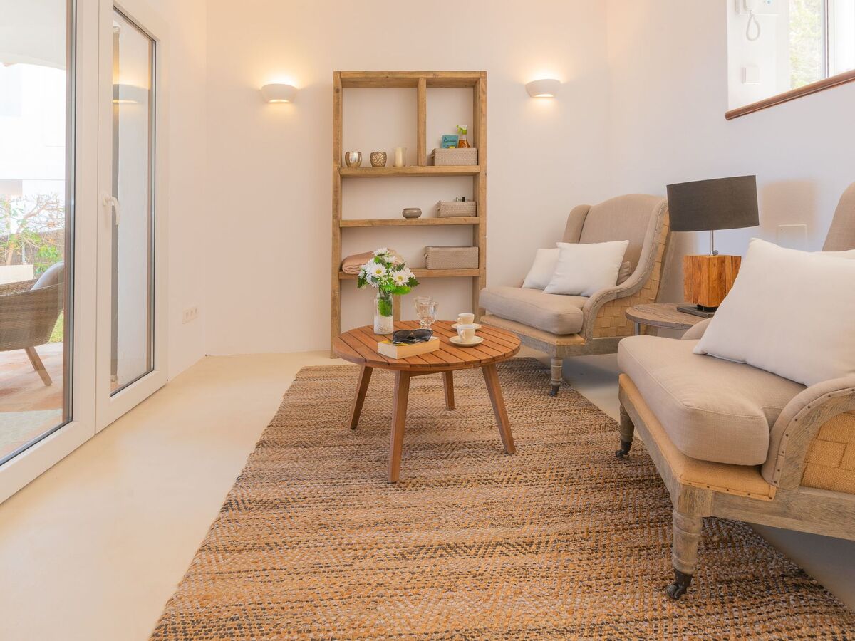 The living area is very cosy and has a reading corner, both offer access to the main covered terrace with views of the pool and the sea.
