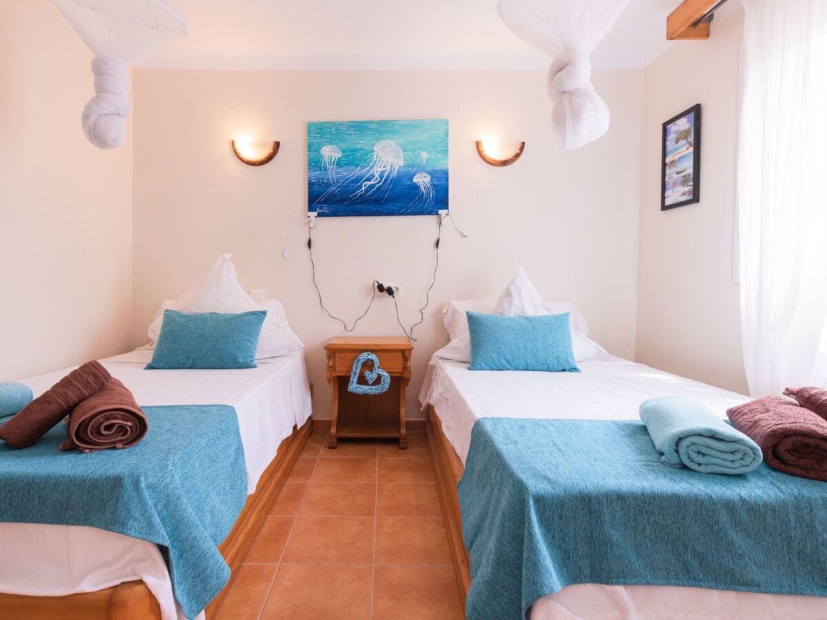 There are 3 bedrooms, one with a double bed, another with a double bed (two mattresses together) and finally a bedroom with two single beds.
