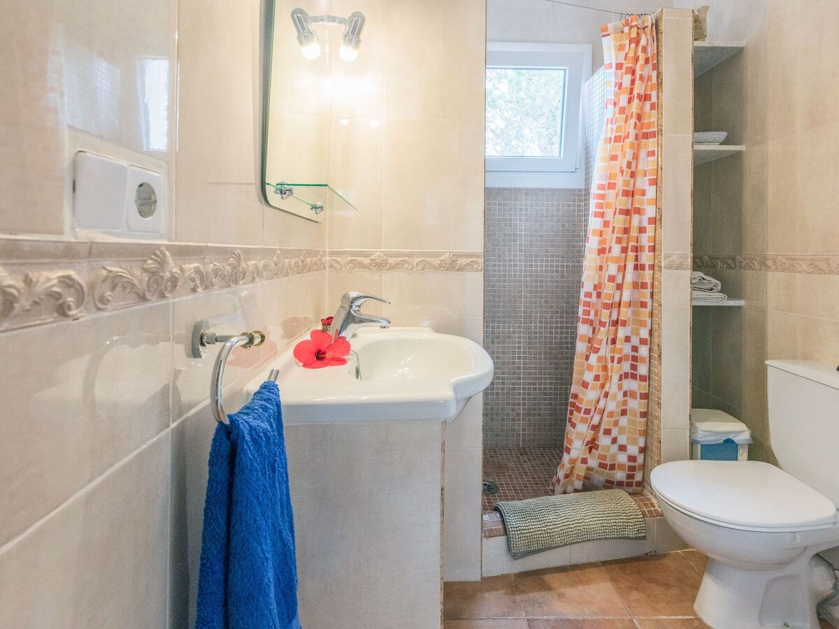 These bedrooms share a bathroom with bath and separate shower and an external staircase at the side of the house leads to the first floor, where there is a second living room with access to a comfortable terrace overlooking the pool.