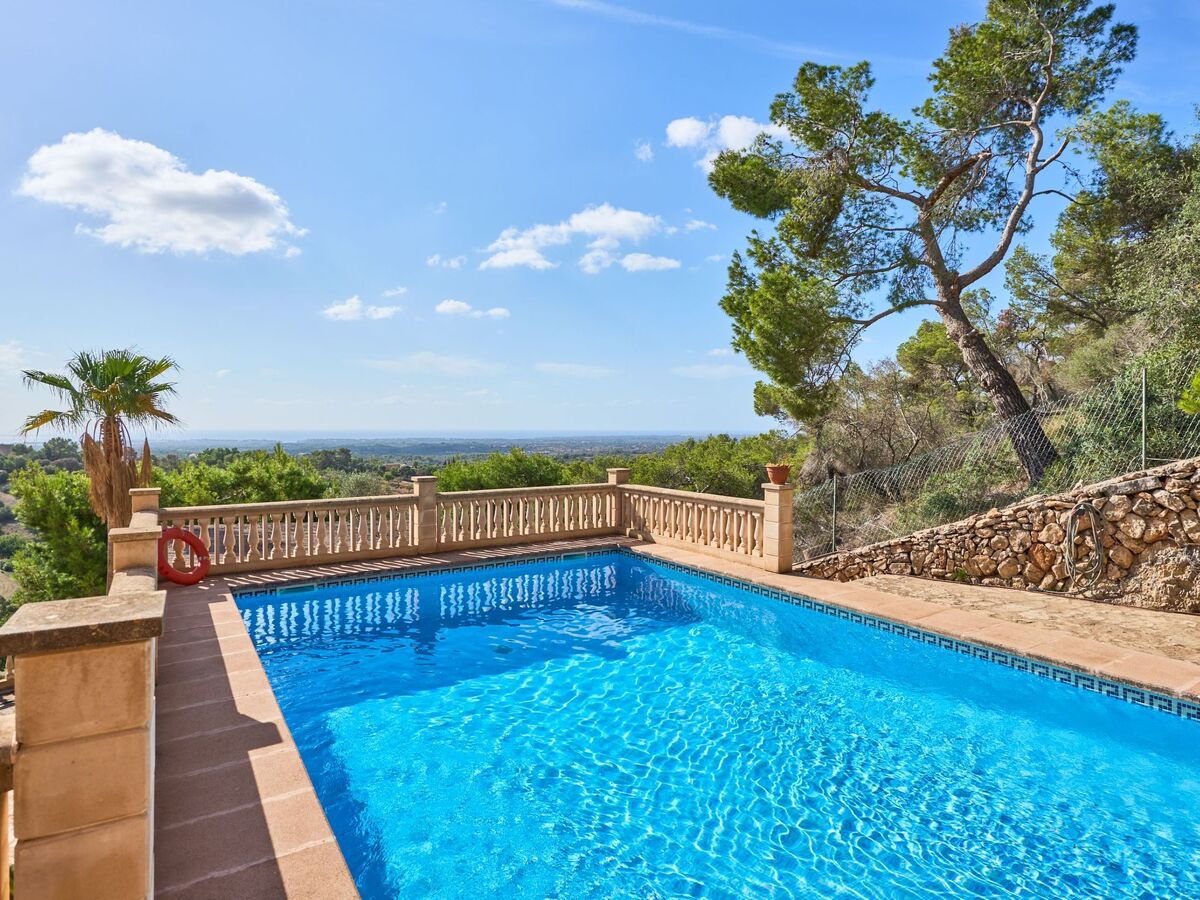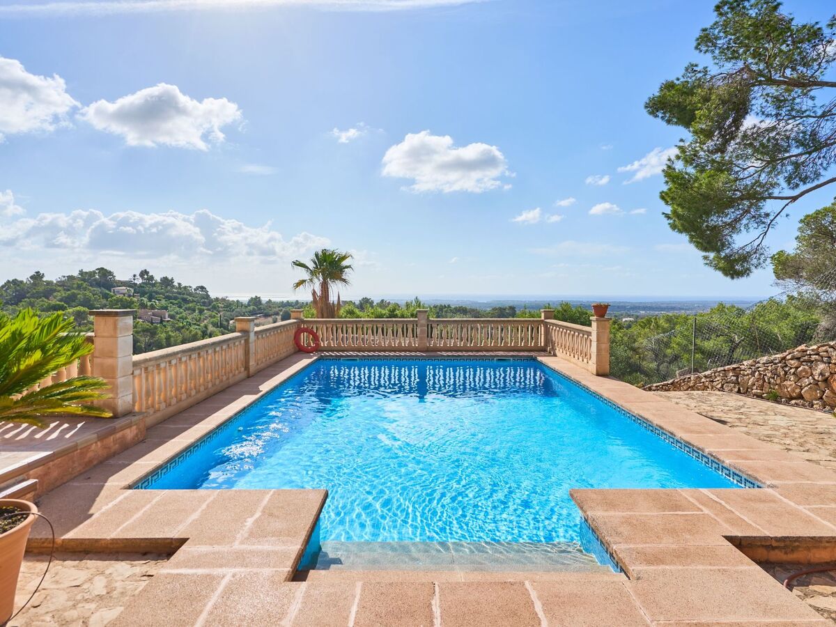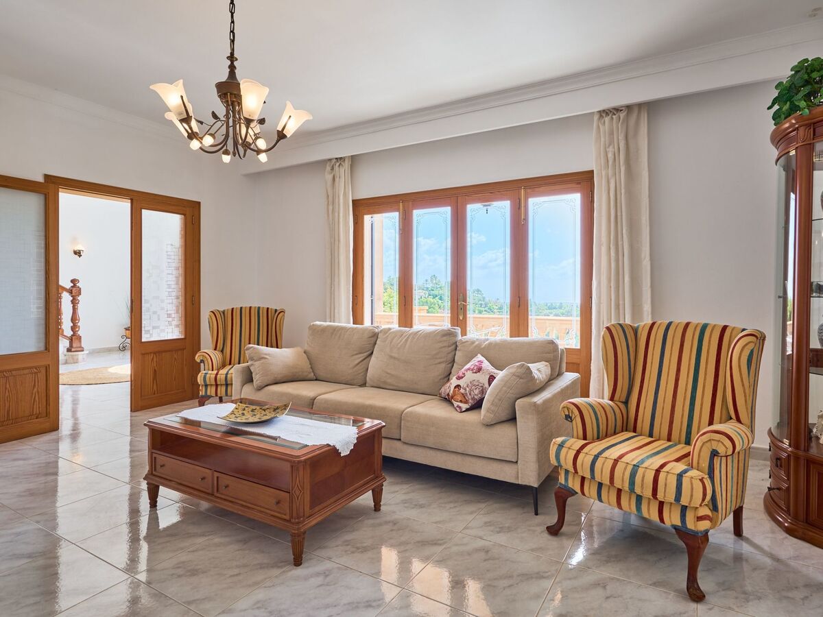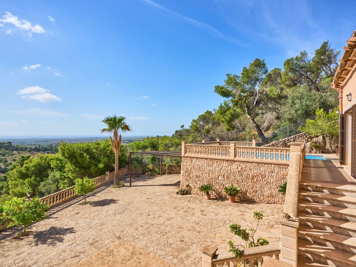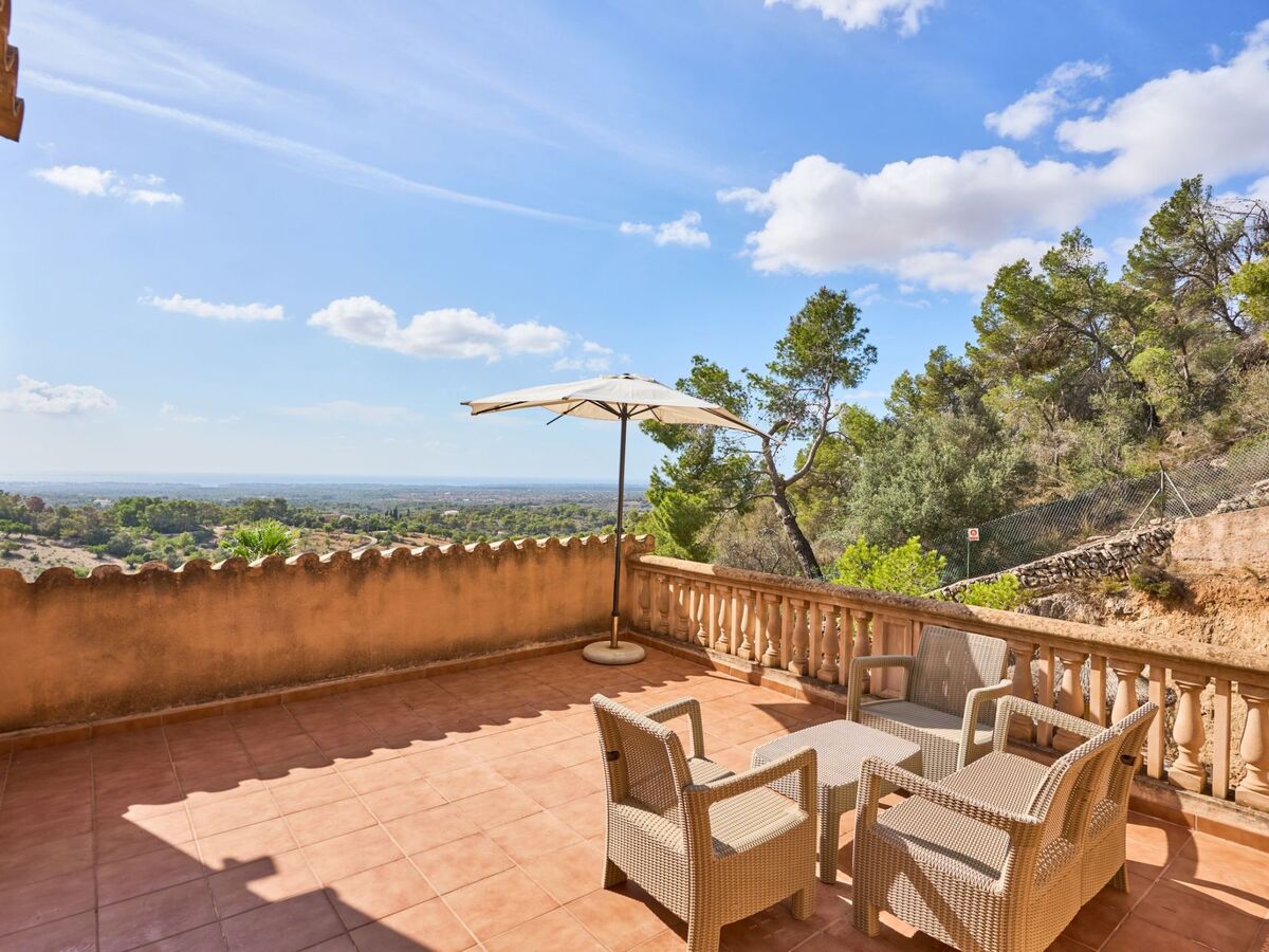 Depuis le couloir, on accède à une belle terrasse avec un coin salon où l'on peut profiter de la vue panoramique jusqu'à la mer à 6 km de là.