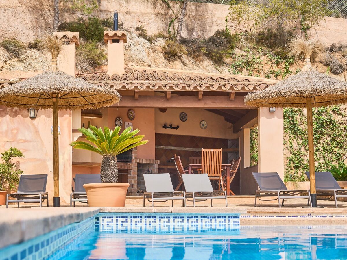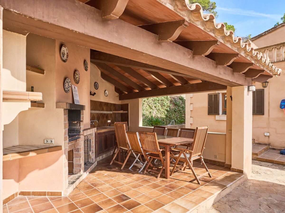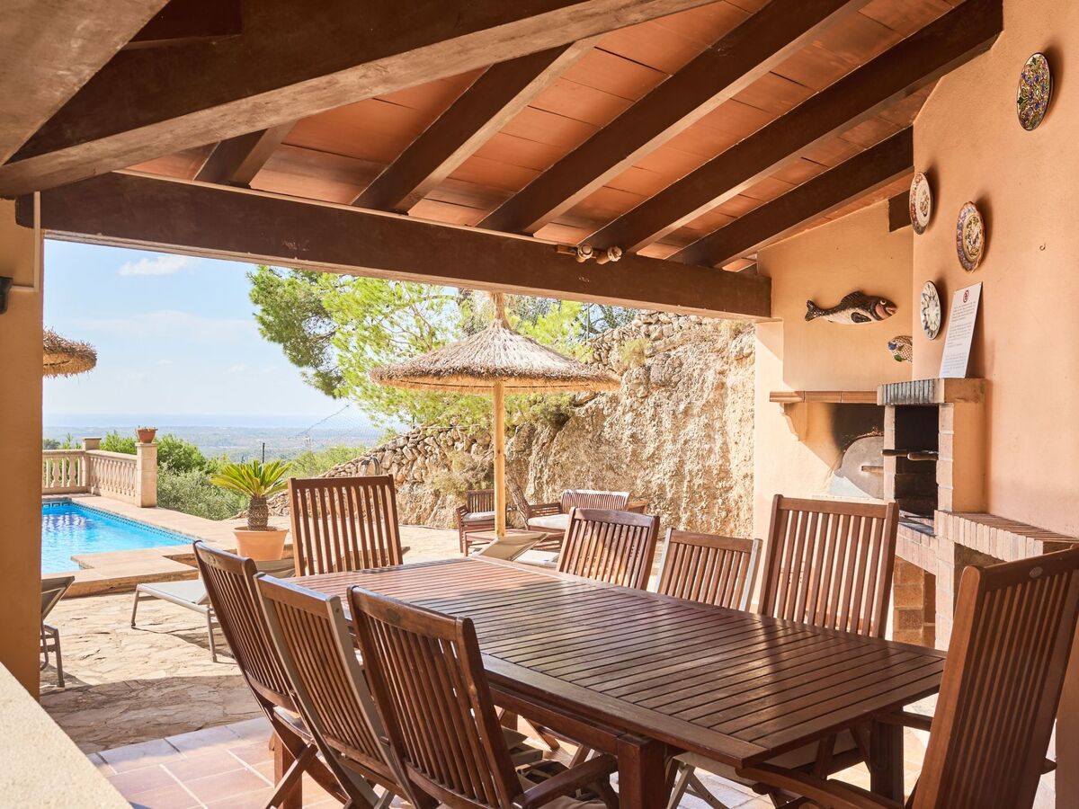 La véranda à côté de la piscine est partiellement couverte et c'est là que se trouve le barbecue maçonné.