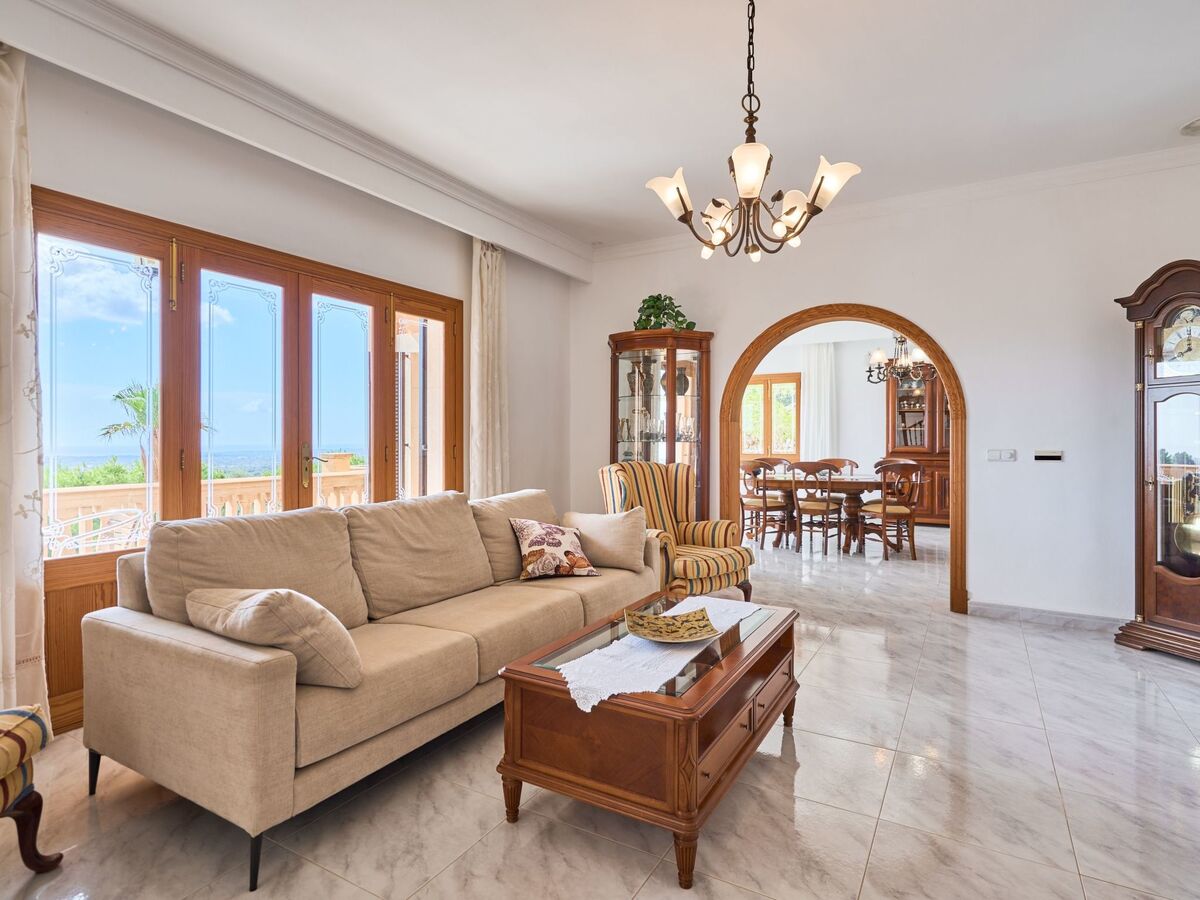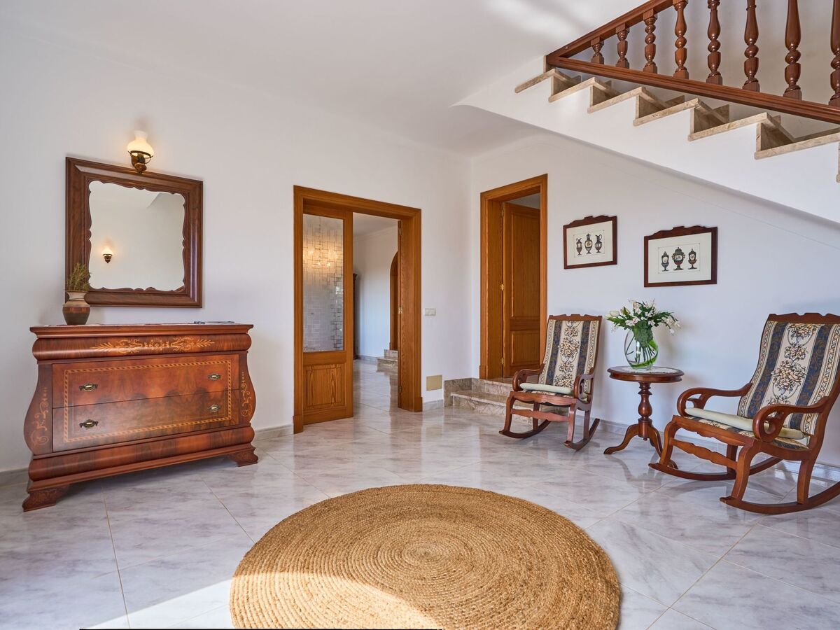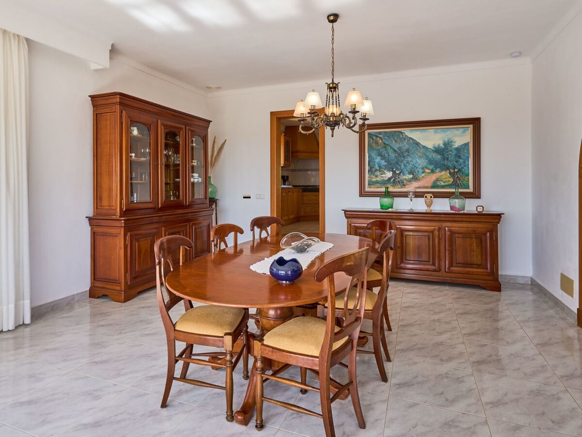 Au rez-de-chaussée se trouvent le salon et la salle à manger reliés par un arc en plein cintre et donnant sur une petite terrasse avec vue panoramique sur la côte et accès à l'espace piscine.