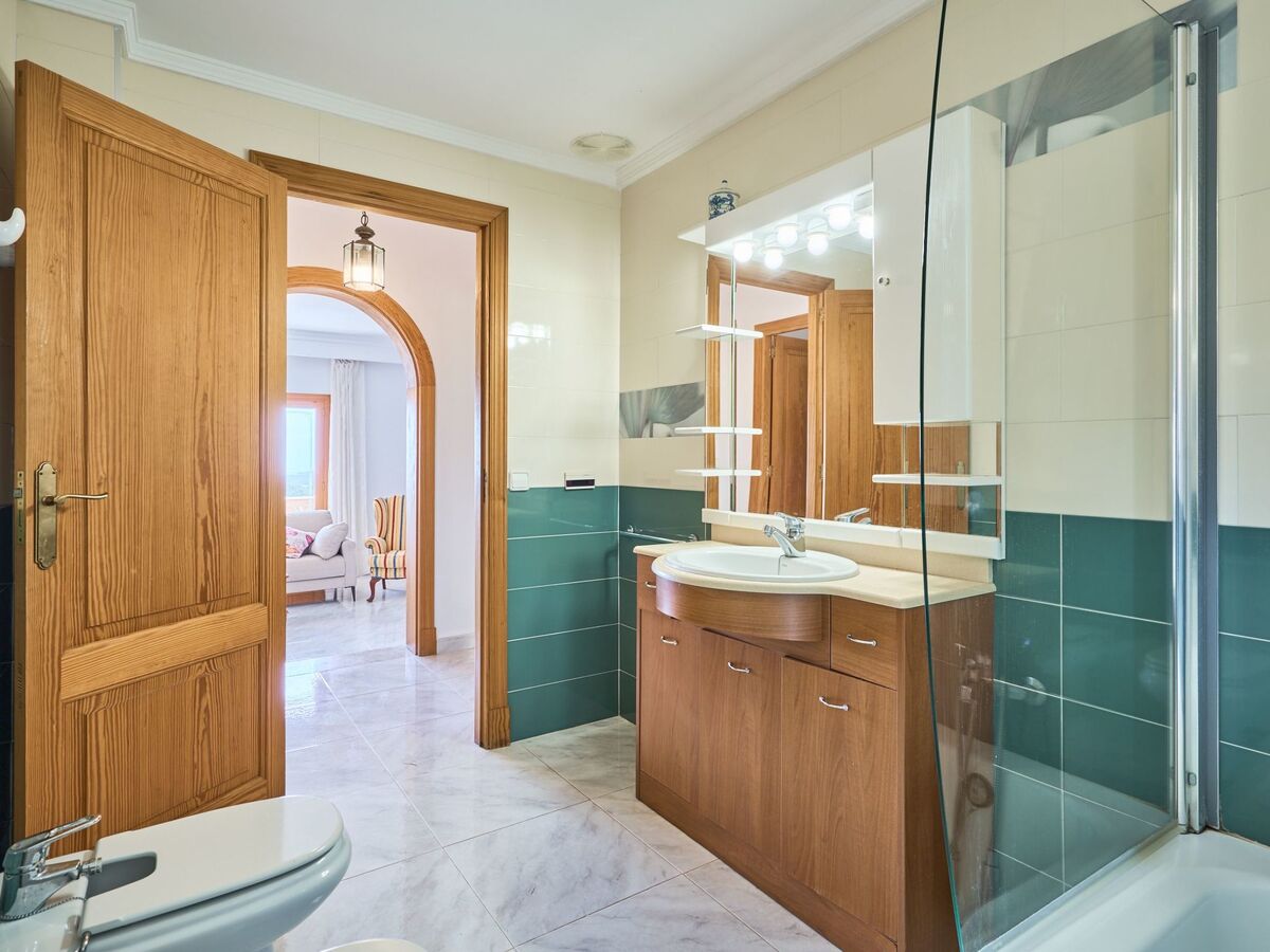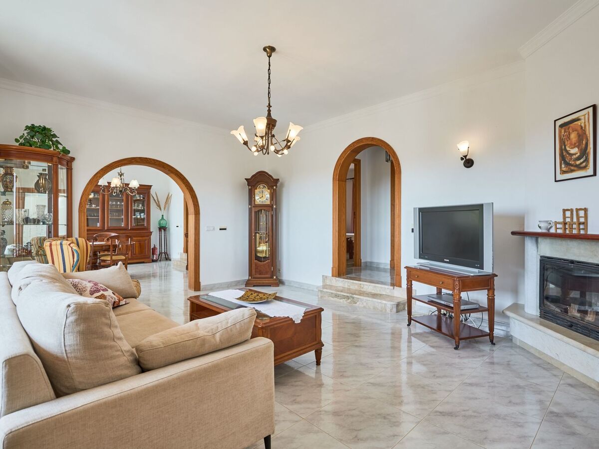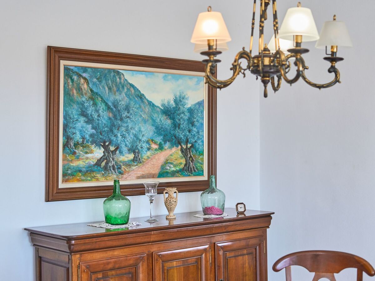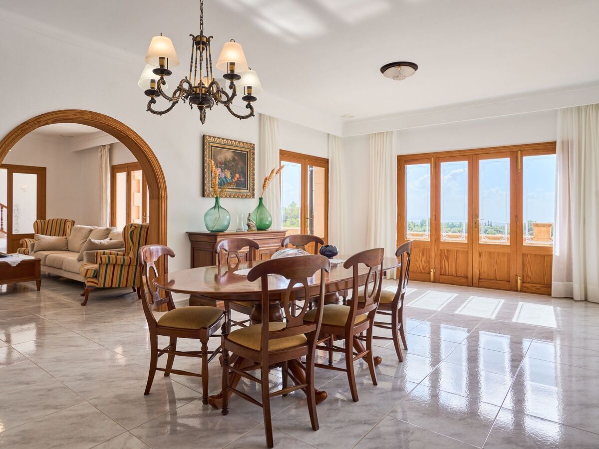 Au rez-de-chaussée se trouvent le salon et la salle à manger reliés par un arc en plein cintre et donnant sur une petite terrasse avec vue panoramique sur la côte et accès à l'espace piscine.