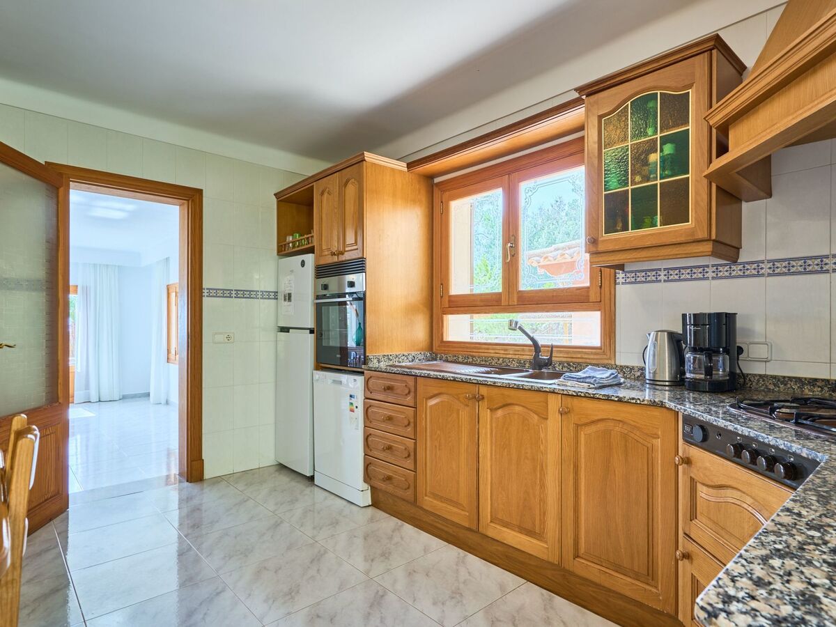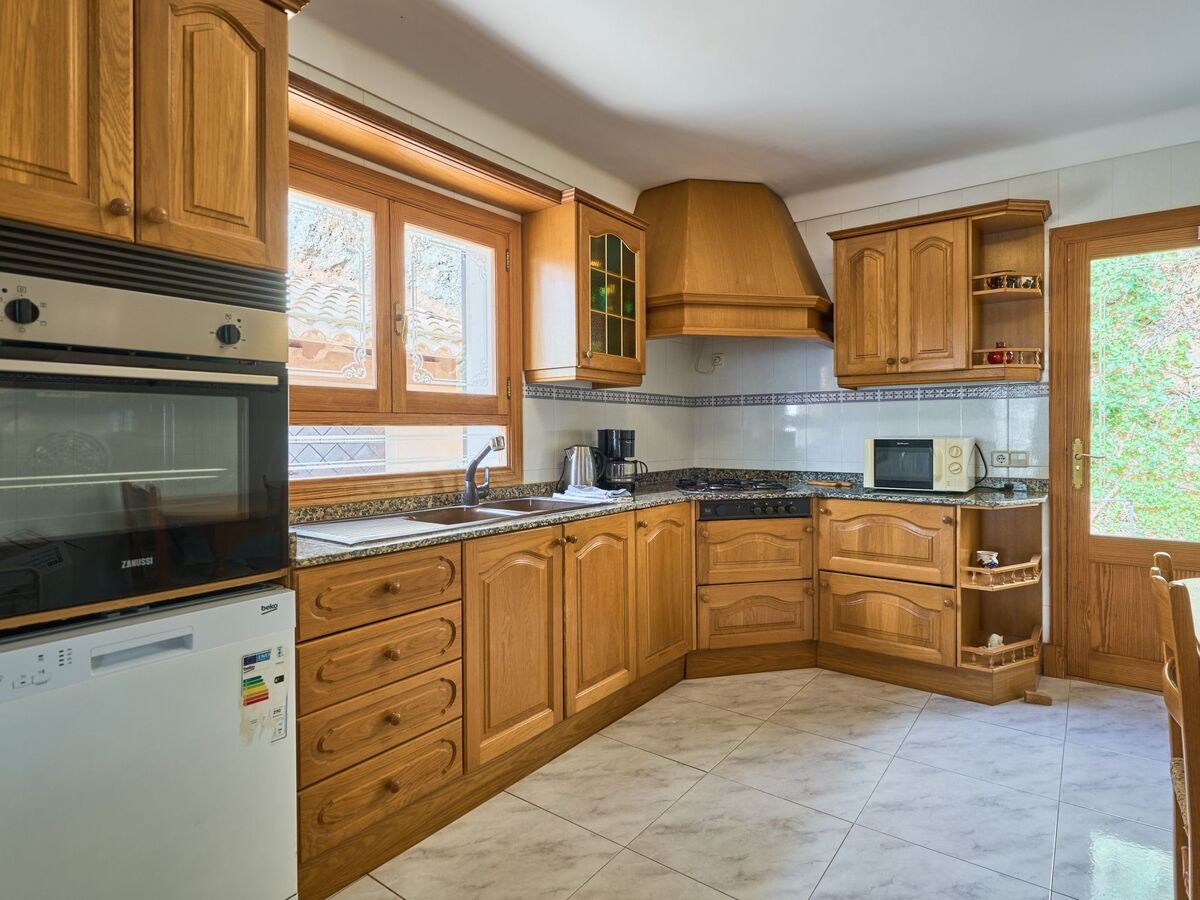 La cuisine équipée pour les vacances dispose en outre d'une autre porte latérale avec accès à l'extérieur et à l'espace piscine.