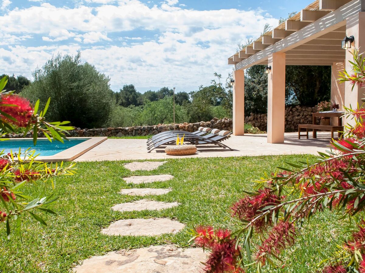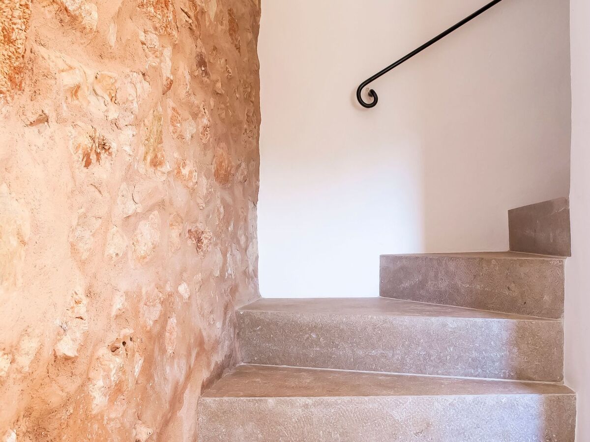 It has the charm of the typical Mallorcan country house with a wonderful mix of rustic details such as natural stone walls, high ceilings with wooden beams combined with comfortable, modern furniture.