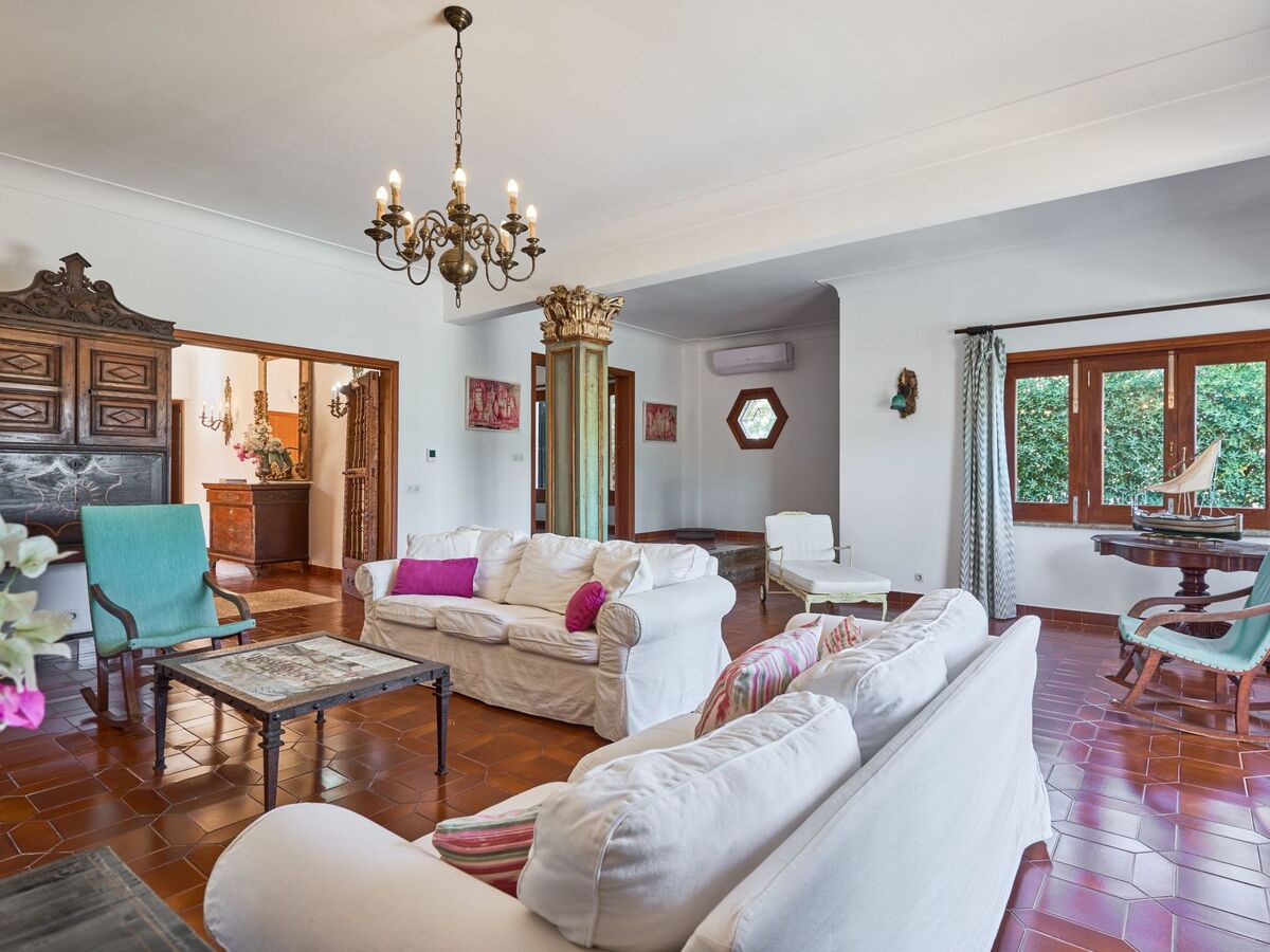 À l'intérieur, un salon lumineux et spacieux vous accueille avec une télévision intelligente, deux canapés confortables près de la cheminée et un accès direct à la terrasse et à la piscine.