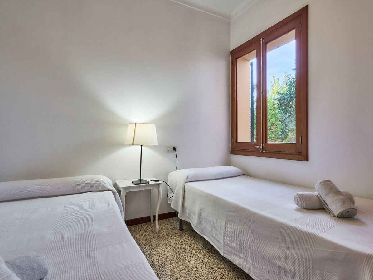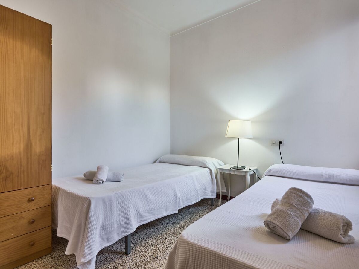 À côté de la cuisine se trouve une petite chambre avec deux lits simples et une salle de bain séparée avec douche.