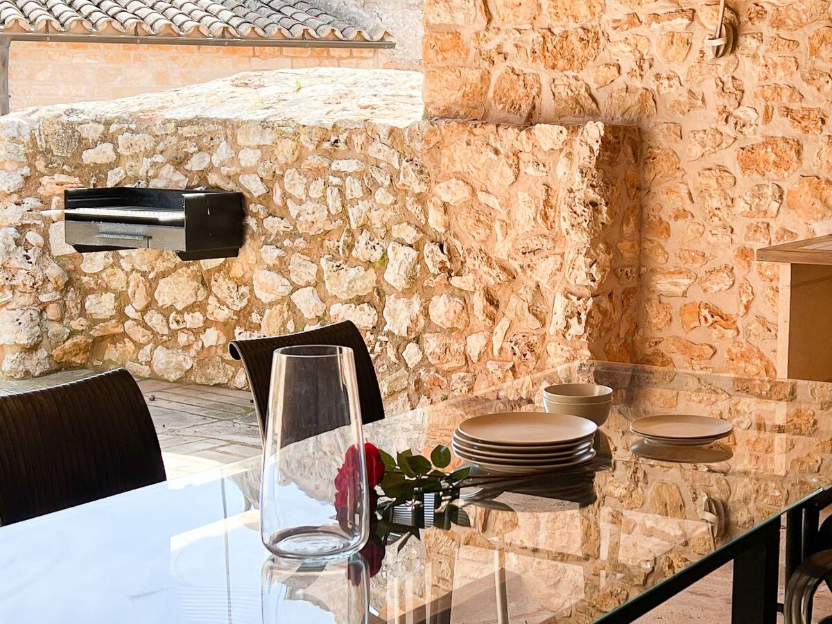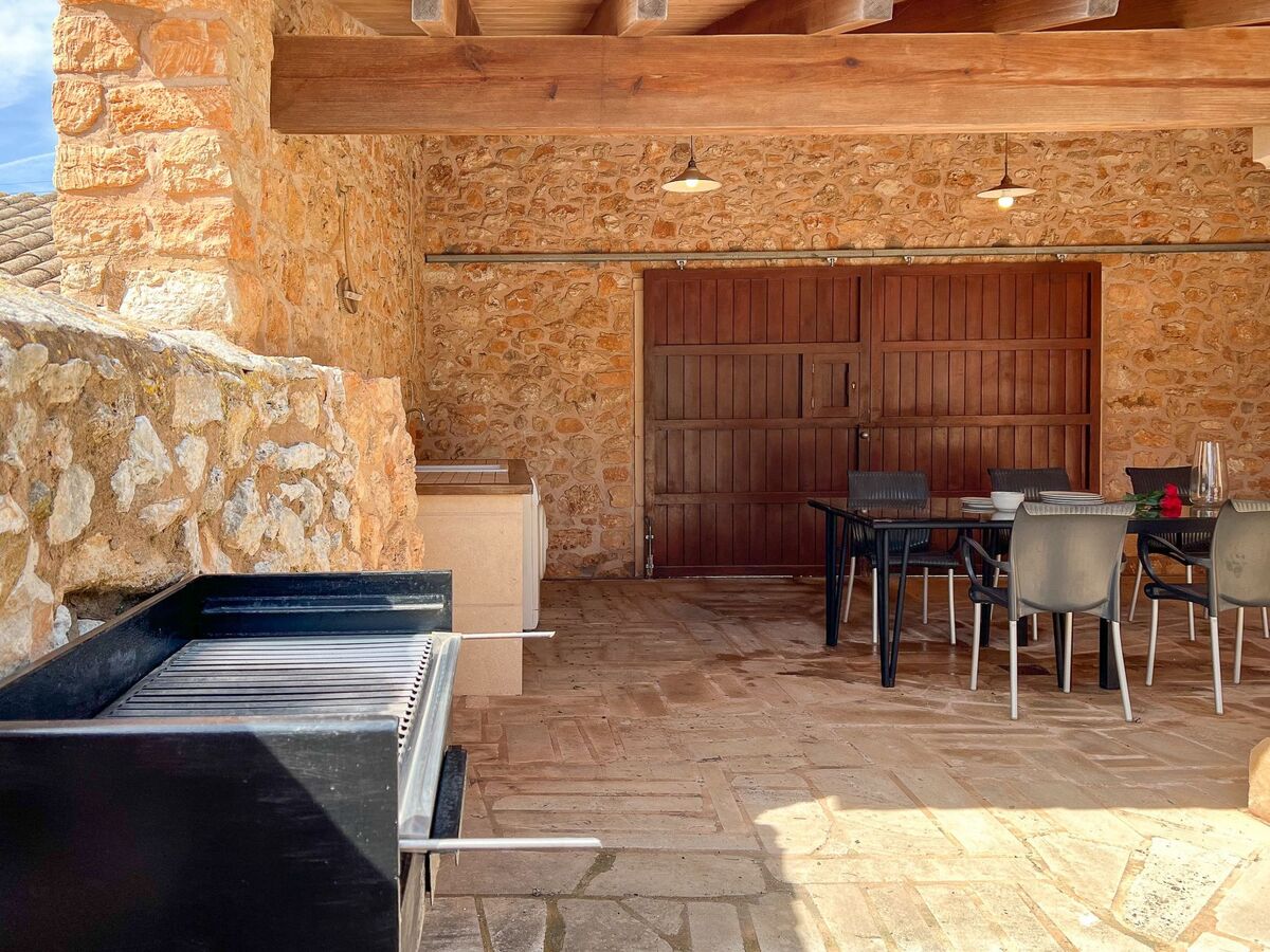 The beautiful patio, partly covered, the Mallorcan porch is equipped with a barbecue and the dining area with furniture invites you to enjoy culinary delights and barbecues.