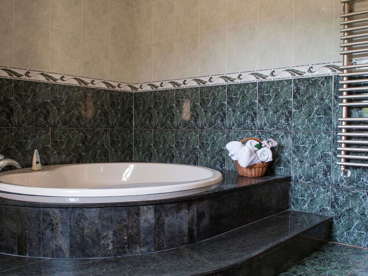 One of them is furnished with 2 single beds, the other is the master bedroom with double bed, elegantly furnished and very spacious with its own terrace and wonderful en-suite bathroom, with marble shelves, Jacuzzi corner bath and a step-free walk-in shower.
