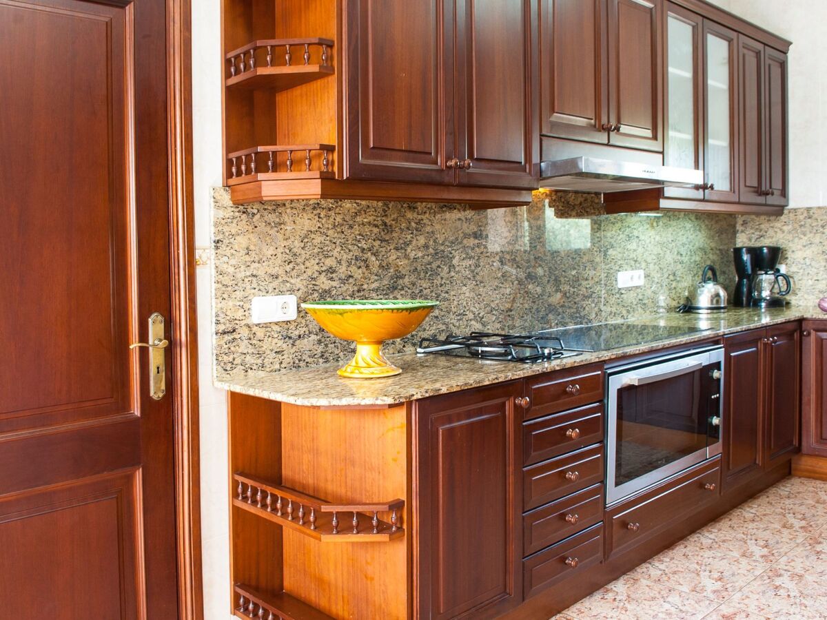 Next to it is the well-equipped country kitchen with adjoining service room with washing machine.