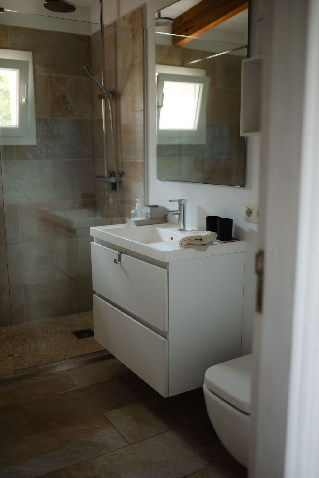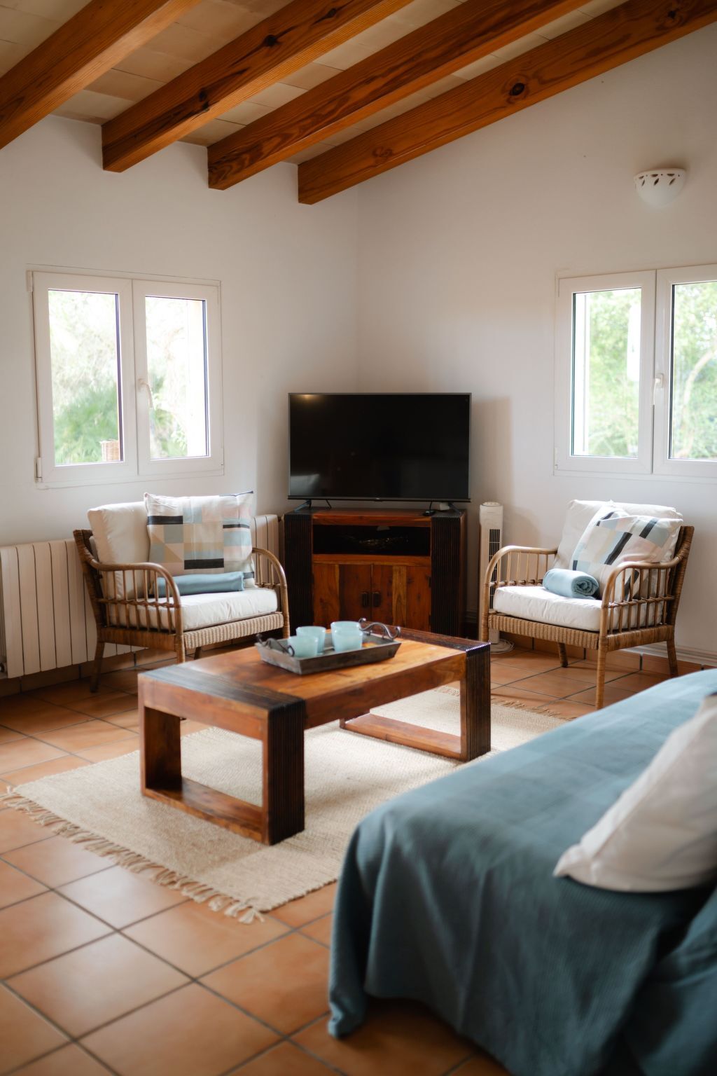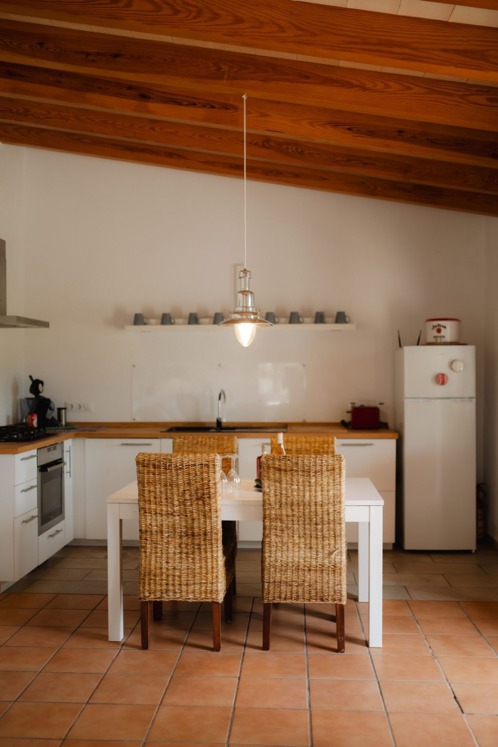 The high ceilings with their wooden beams and the Mallorcan tiled floor give the finca a particularly cosy atmosphere.