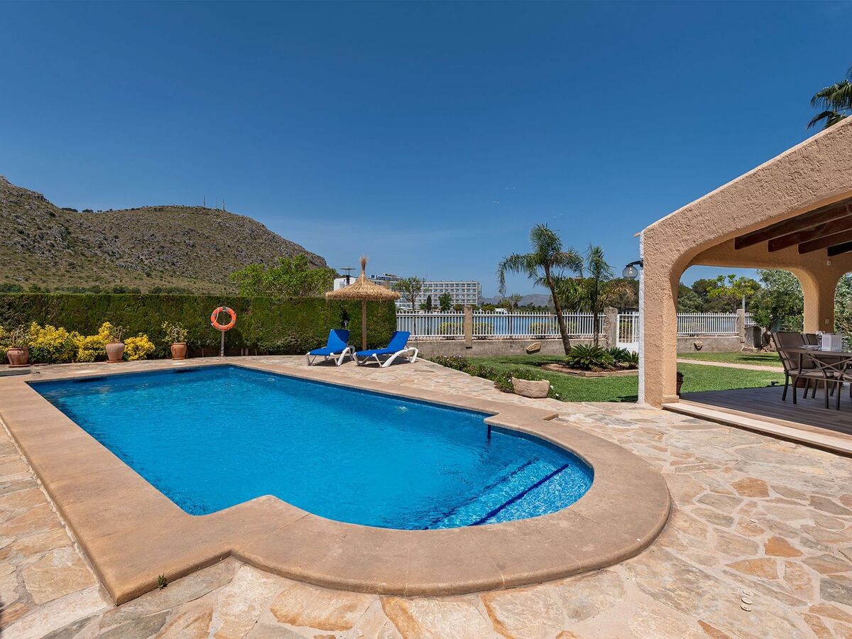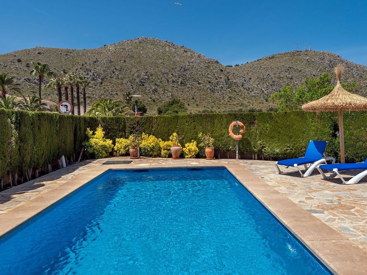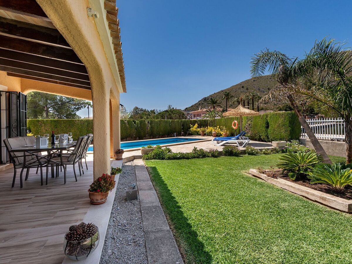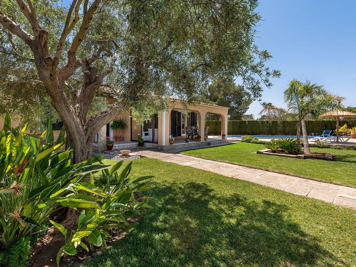 The front of the house features a well-manicured garden and a refreshing swimming pool, ideal for beating the summer heat.
