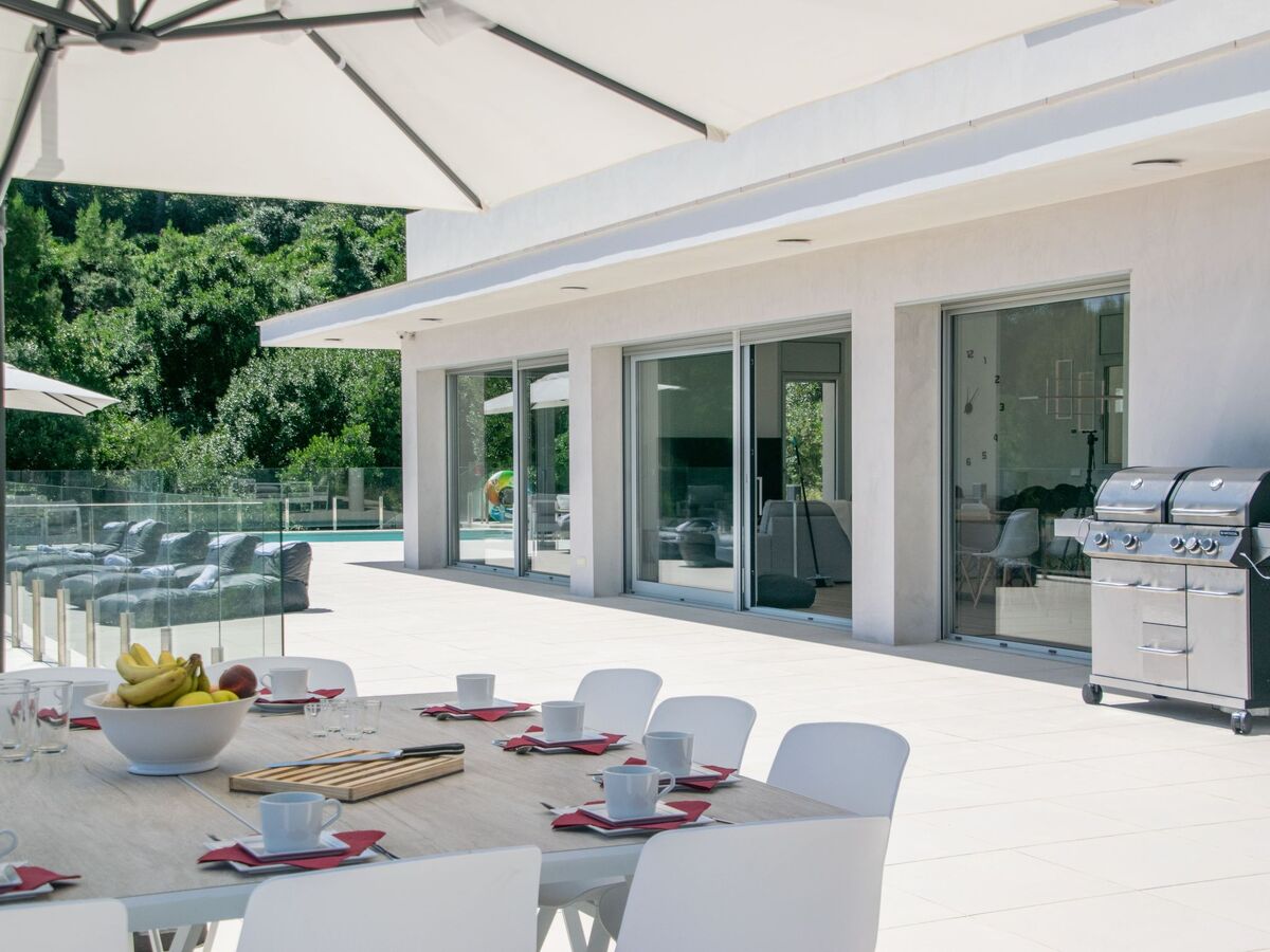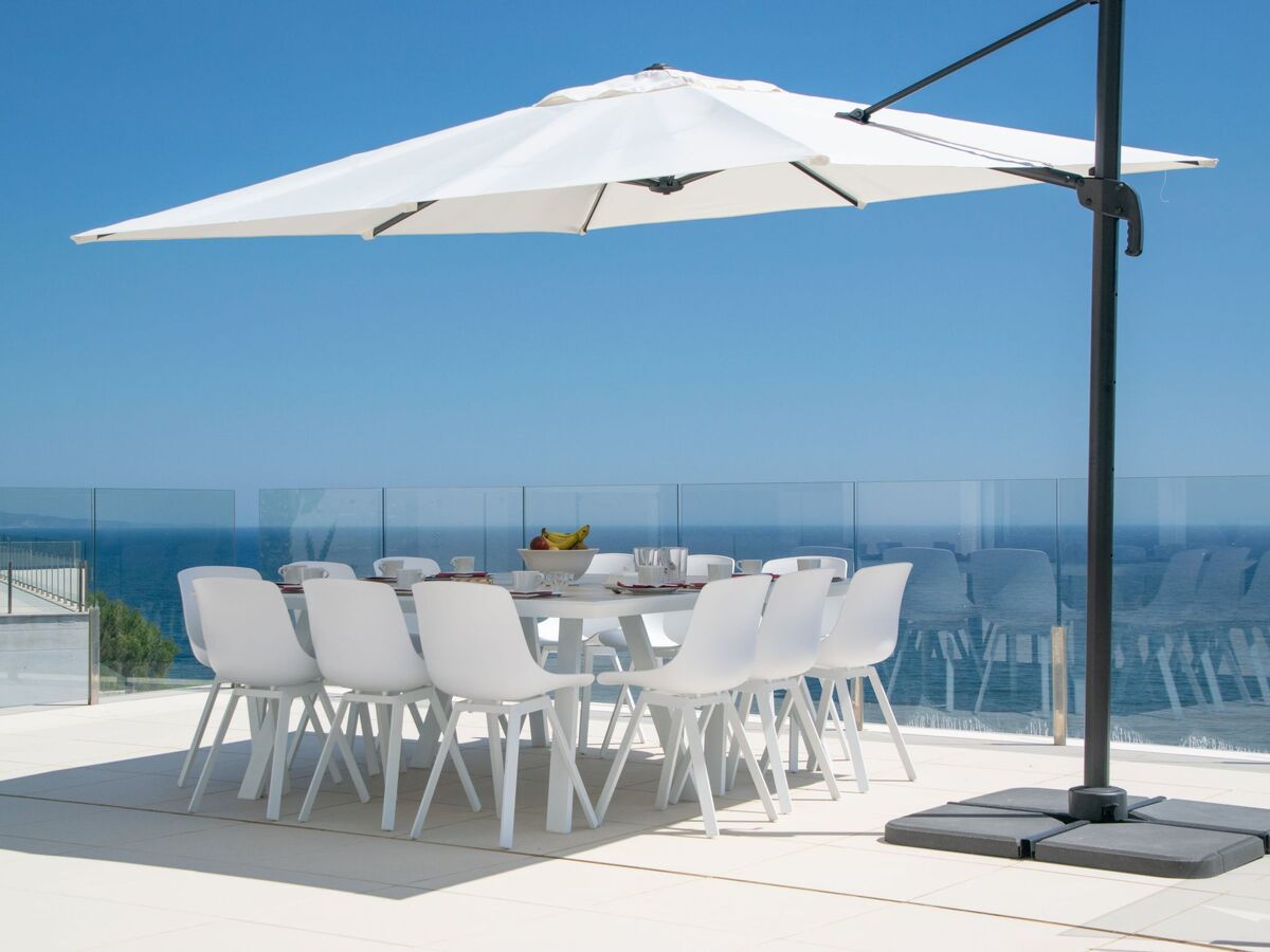 Une table de jardin et 12 chaises vous attendent pour profiter de cet espace face à la mer.