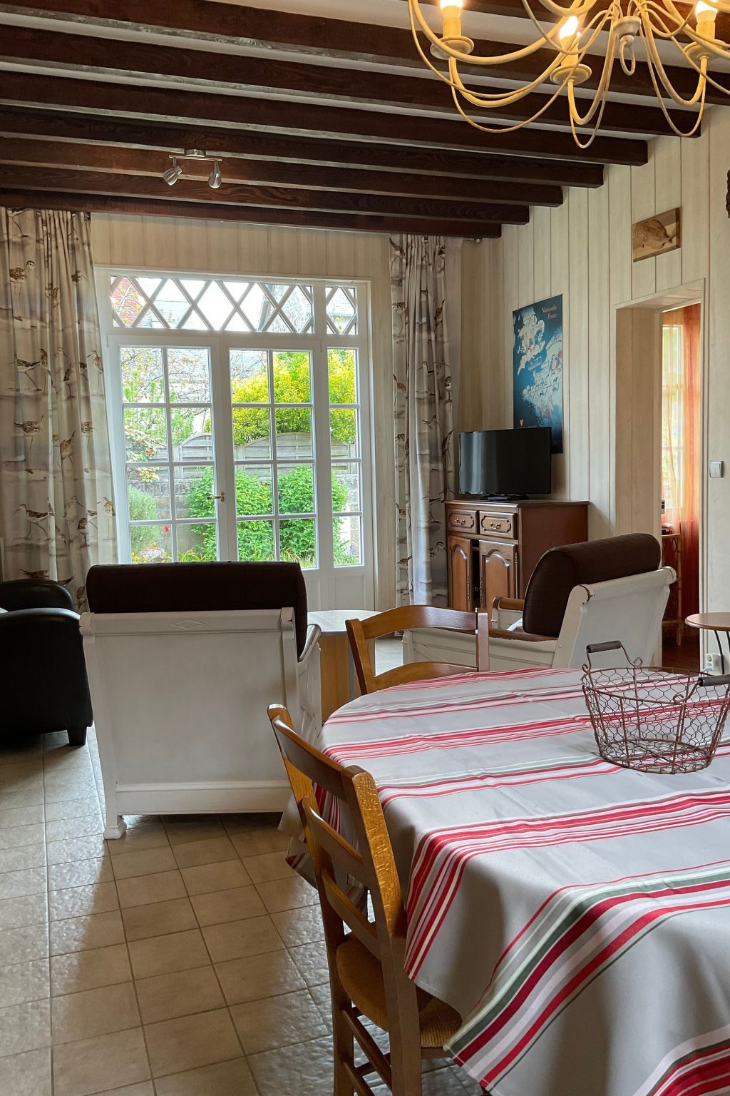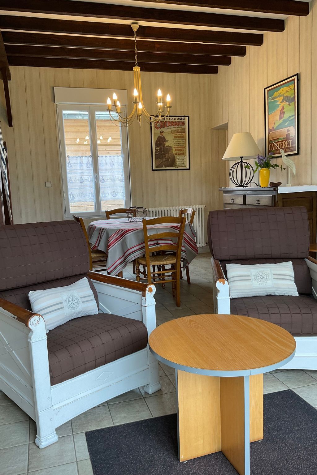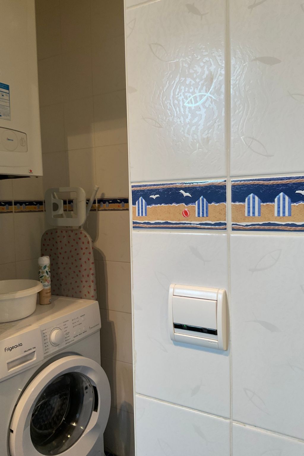 Lave linge.Une grande chambre double avec un lit de 150, commodeA l'étage : Une chambre double avec deux lits de 90, commode et penderie, une chambre simple avec un lit de 140 avec commodeChauffage central au gaz de ville.