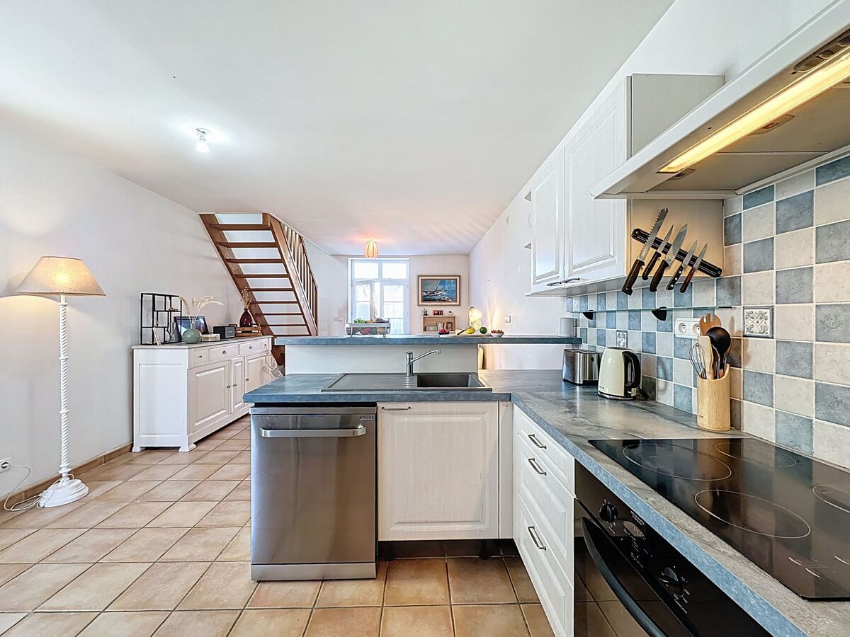 Cuisine ouverte (four, lave-vaisselle, 4 plaques vitrocéramiques, grille-pain, bouilloire électrique, micro-ondes, cafetière électrique).