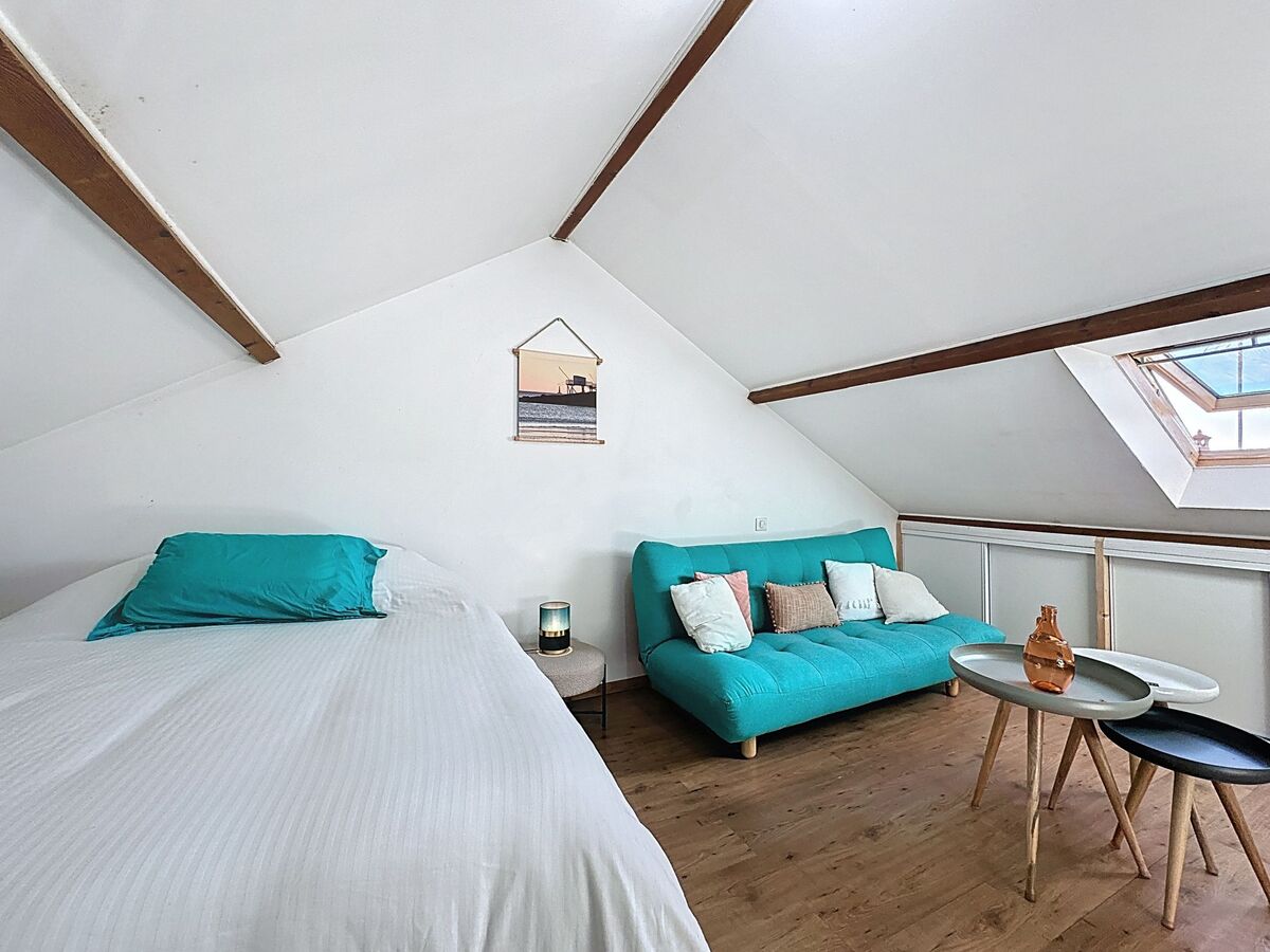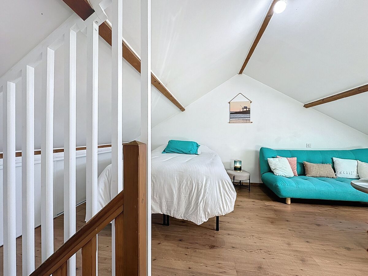 À l'étage supérieur: 1 grande chambre, ouverte avec 1 grand-lit (1 x 160 cm, longueur 200 cm), TV (écran plat).