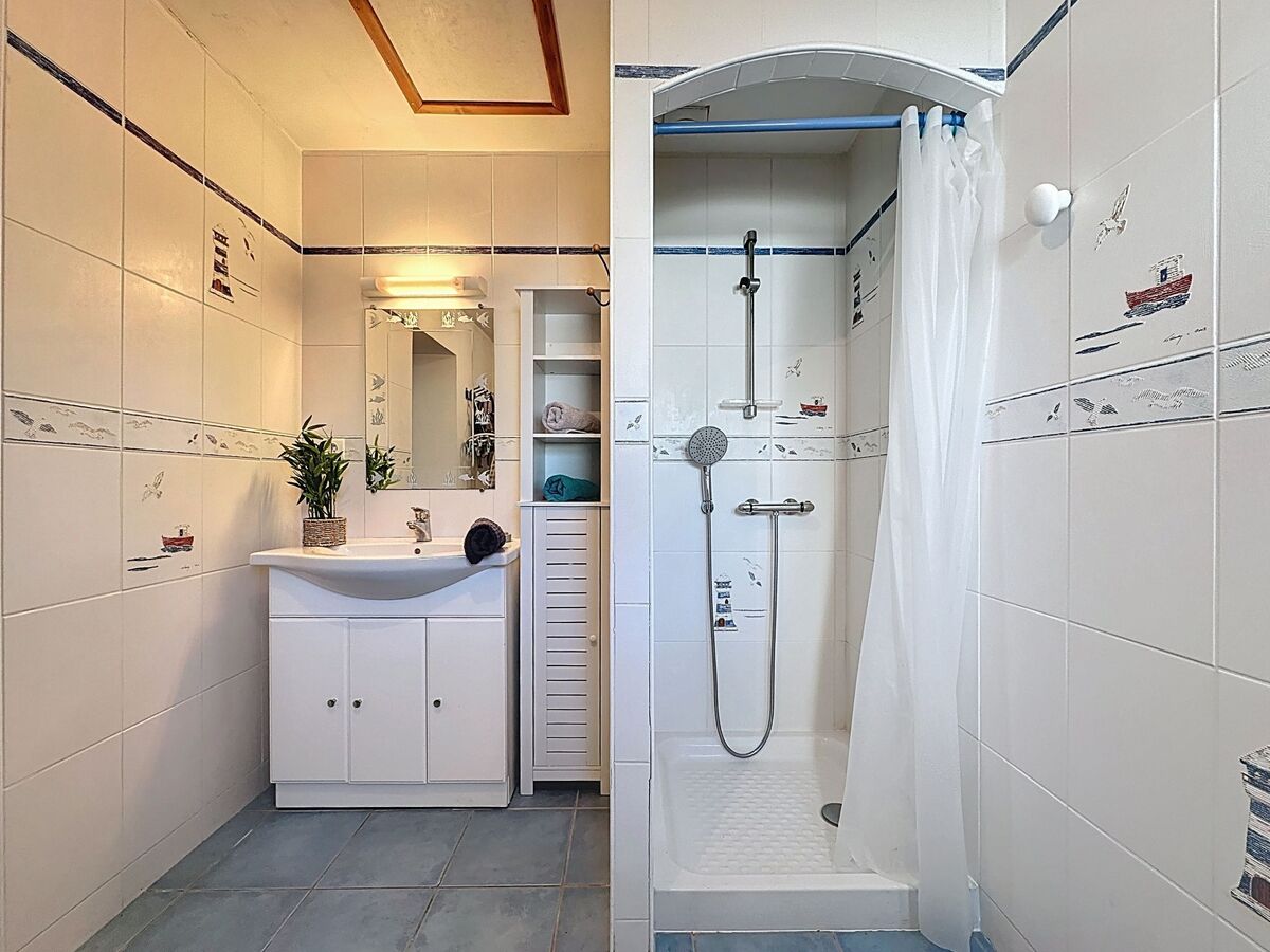 1 grande chambre avec 1 grand-lit (1 x 160 cm, longueur 200 cm), lavabo, WC séparés et douche.