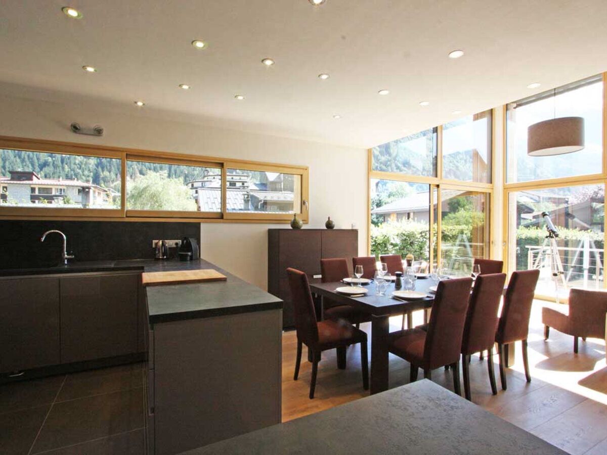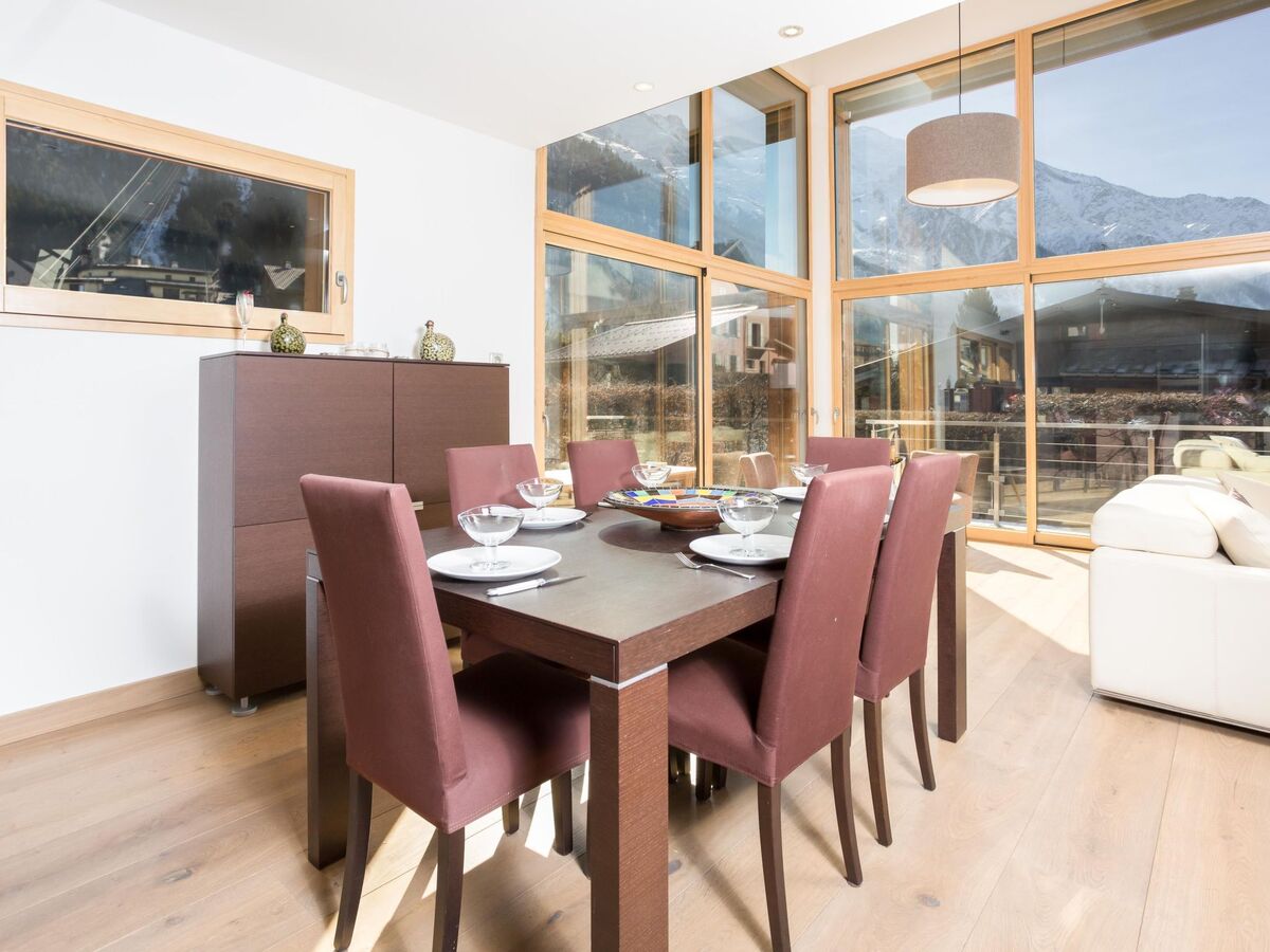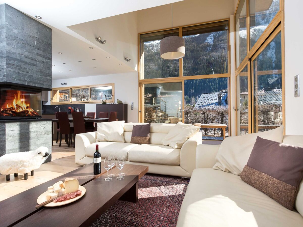 The large picture windows from the living area and spacious terrace and garden offer unrivalled views of Mont Blanc, Aiguille du Midi and Glacier des Bossons.