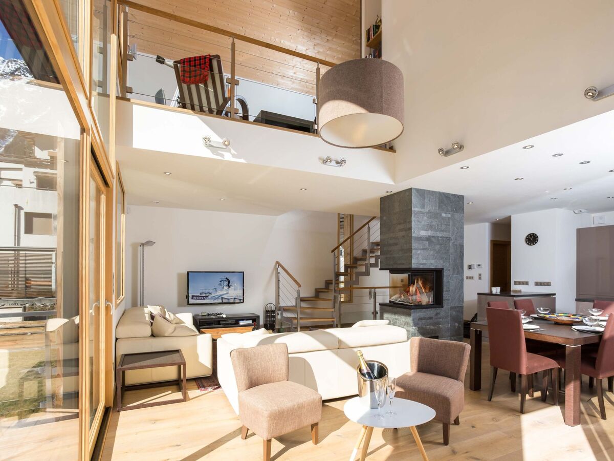 The Chamonix chalet has 4 bedrooms and 3 bathrooms, plus open-plan living and dining area centred around a log fire, as well as a peaceful separate reading snug on the first floor.