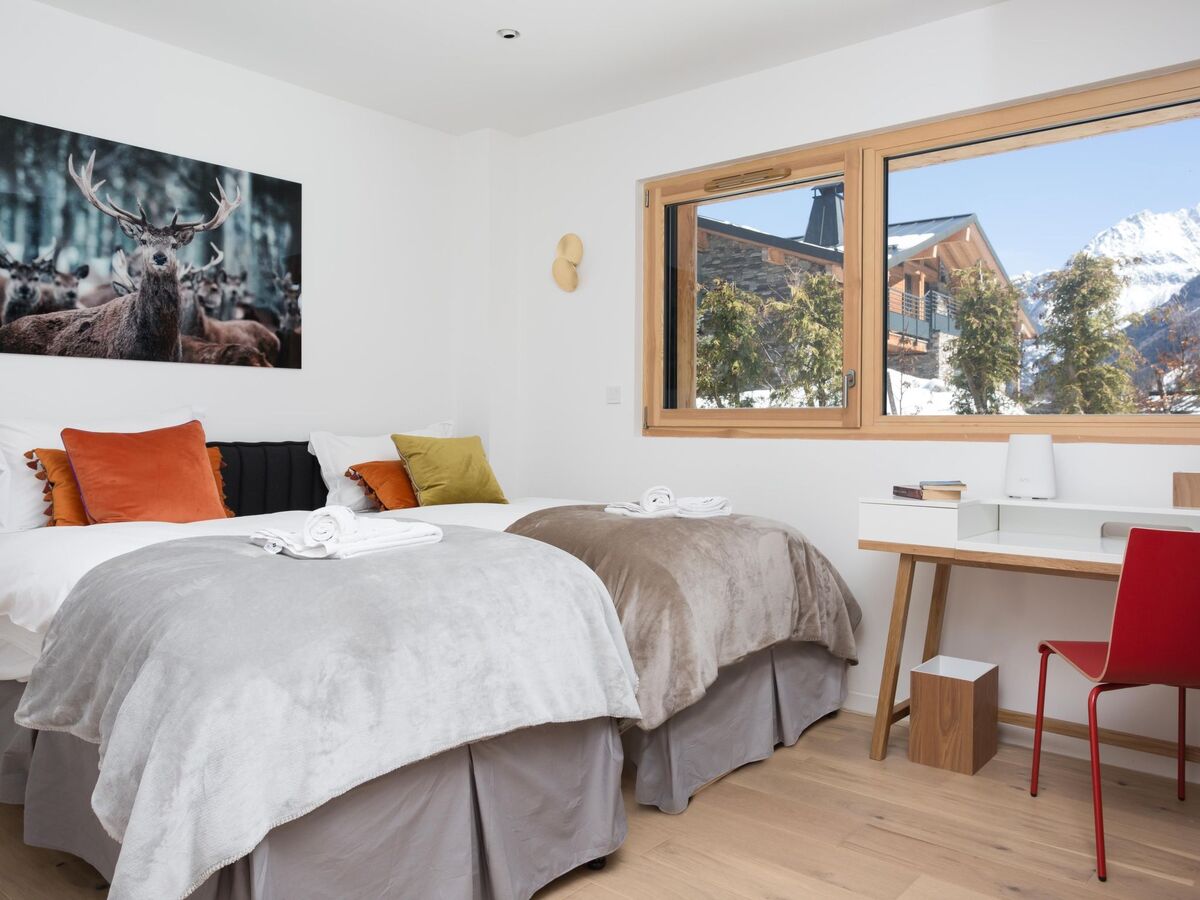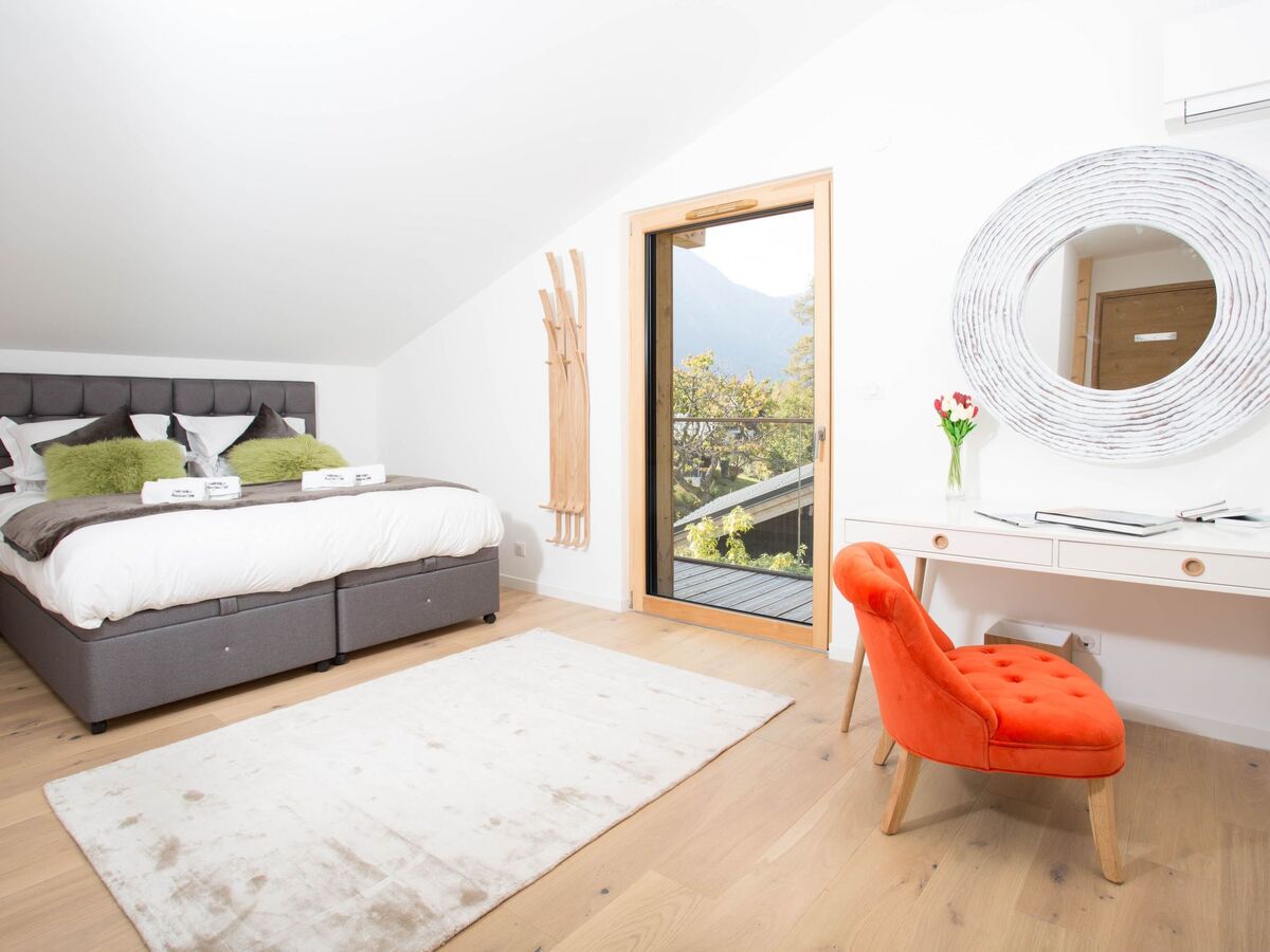 The Chamonix chalet’s master bedroom is a sumptuous retreat for any couple with its comfortable double bed, walk-in wardrobe and ensuite bathroom.