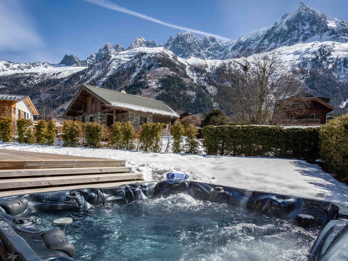 Its south-facing aspect ensures that the terrace, garden, hot tub and balconies get the best of the sun, while also benefiting from a panoramic vista which takes in the Aiguilles de Chamonix, the Aiguille du Midi, Mont Blanc, the Glacier des Bossons and the Dome de Gouter.