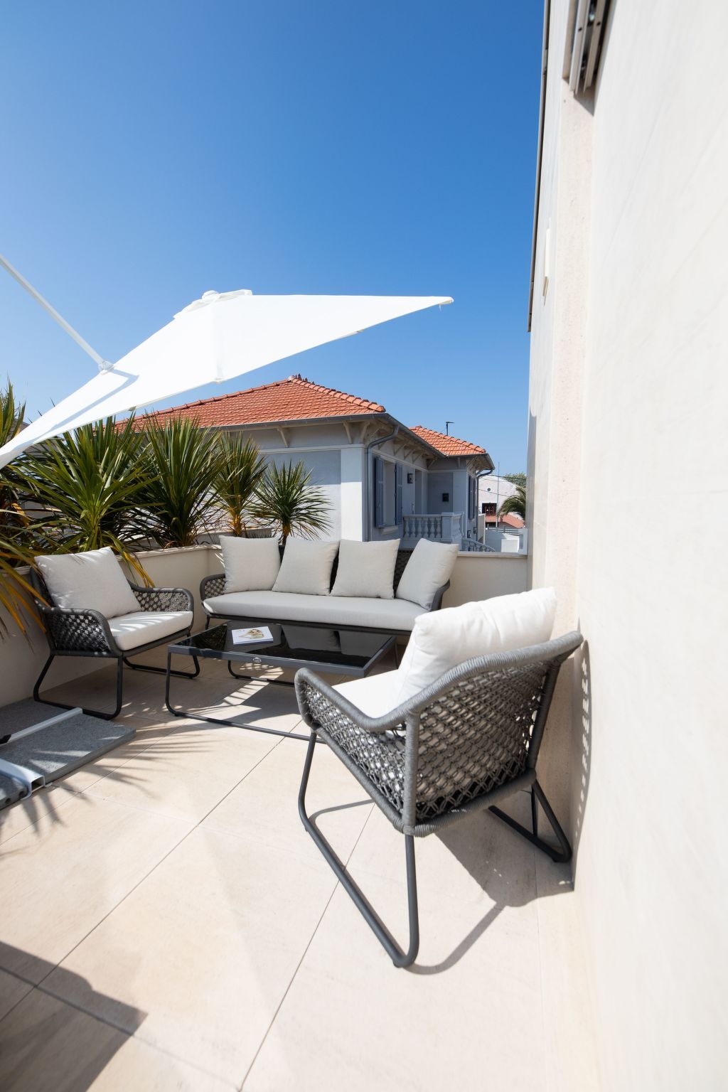 La terrasse offre un espace idéal pour se détendre et partager des moments conviviaux en plein air.