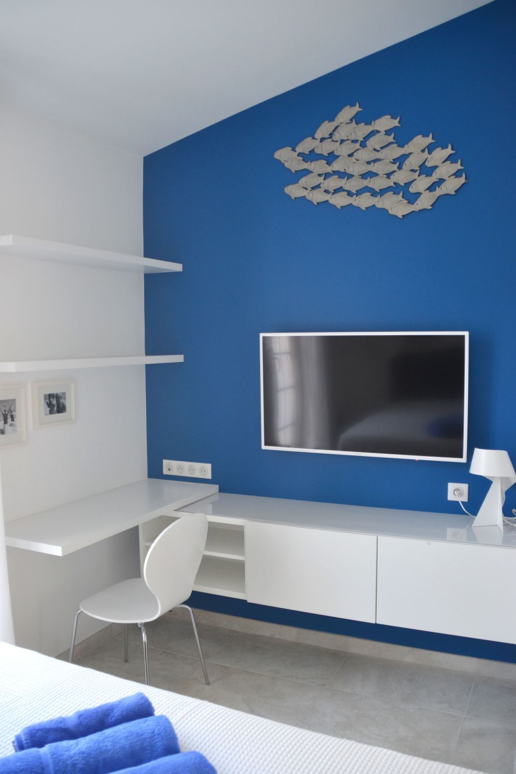 The 'Océan' bedroom is furnished with a double bed (160 cm), a large wardrobe, a chest of drawers and a workstation with an additional internet connection.