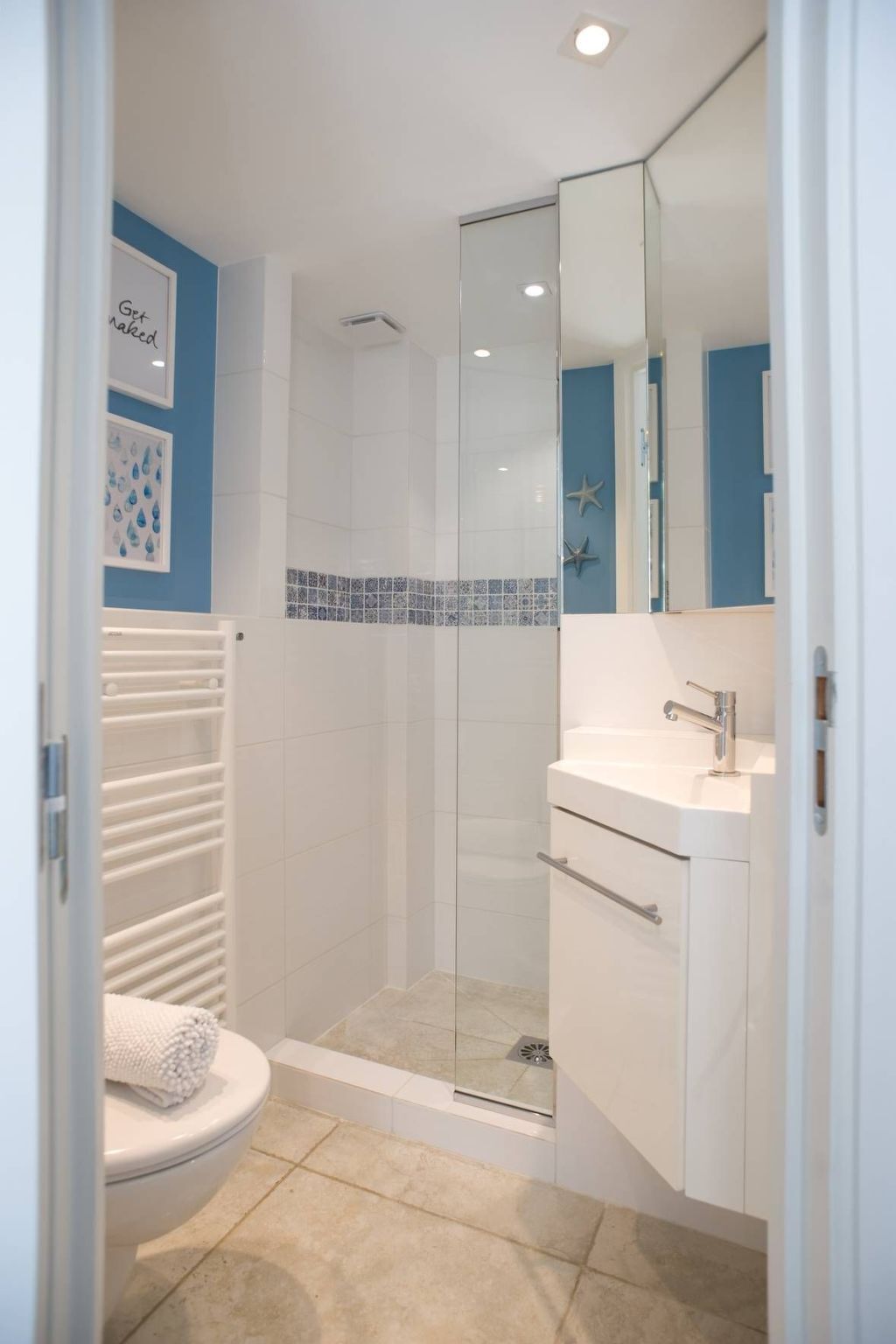 There is also a private bathroom with washbasin, shower and WC.