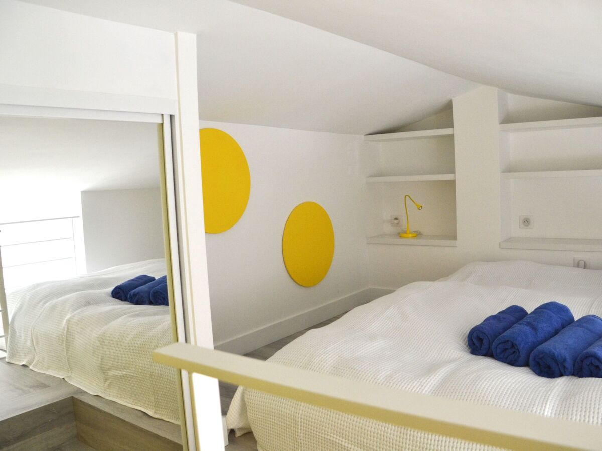 The 'Soleil' bedroom has a choice of a single bed (90 x 190 cm) or pull-out double bed (180 x 190 cm), a wardrobe and a newly inserted mezzanine, which offers a further two beds (each 90 x 200 cm) and an additional wardrobe.