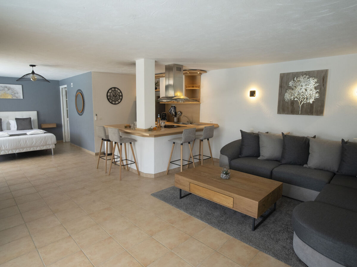 The sleeping area in the studio by the swimming pool has its own separate access.
