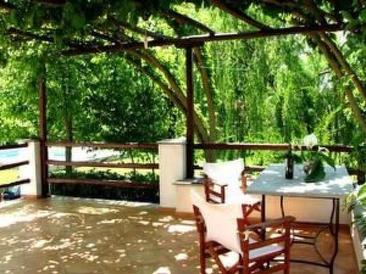 One of the bedrooms has a balcony and downstairs the house has a large covered terrace with Bergola and vine arbour and garden furniture.