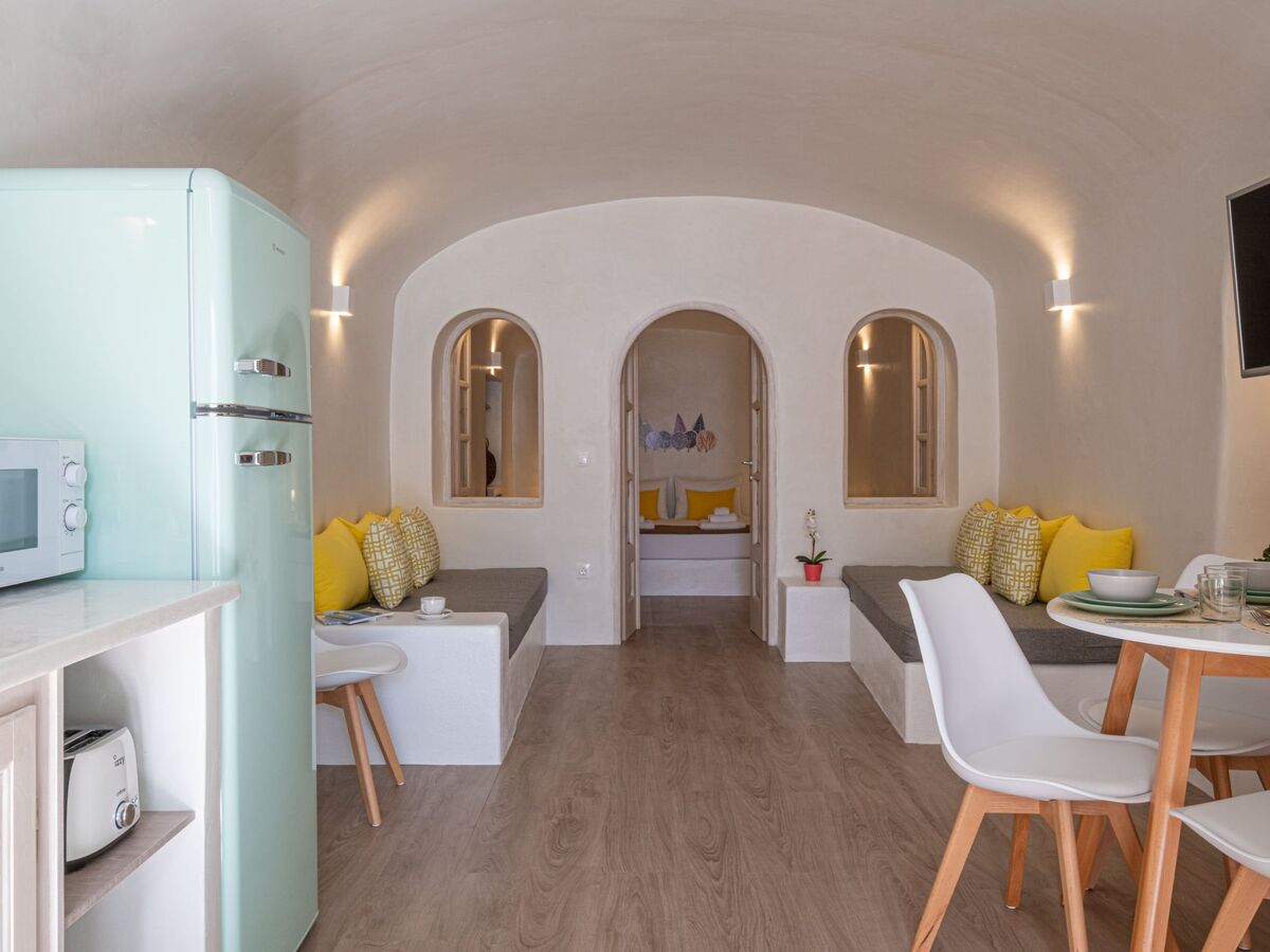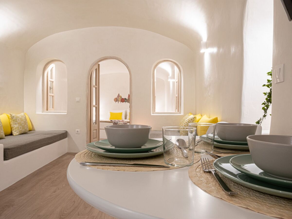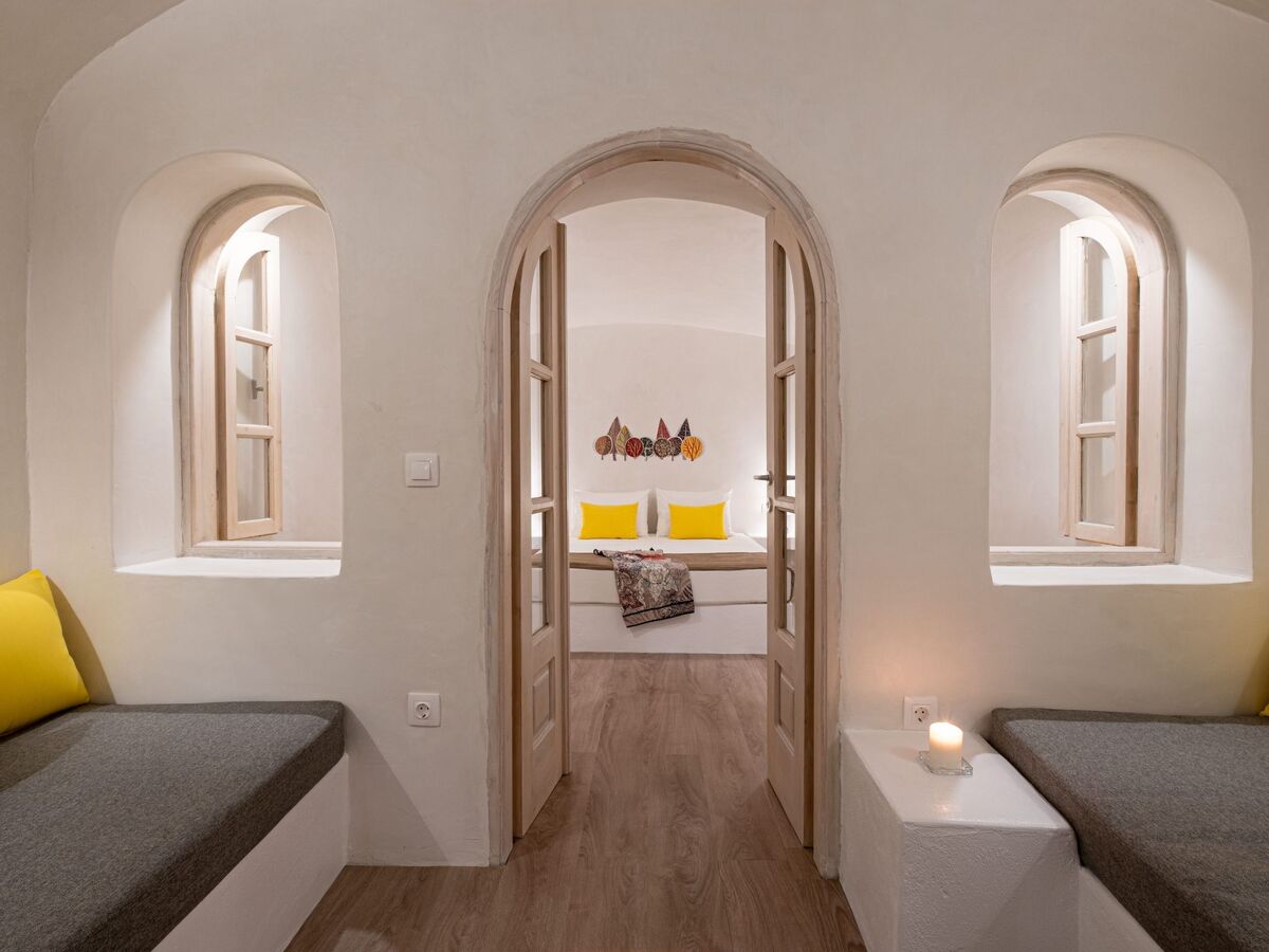 Niché dans le village animé de Pyrgos Kallistis, au cœur de l'île de Santorin, cet établissement offre une vue imprenable sur le sud de l'île, notamment sur le village de Pyrgos, Perivolos, la Caldera, Akrotiri et la mer Égée.