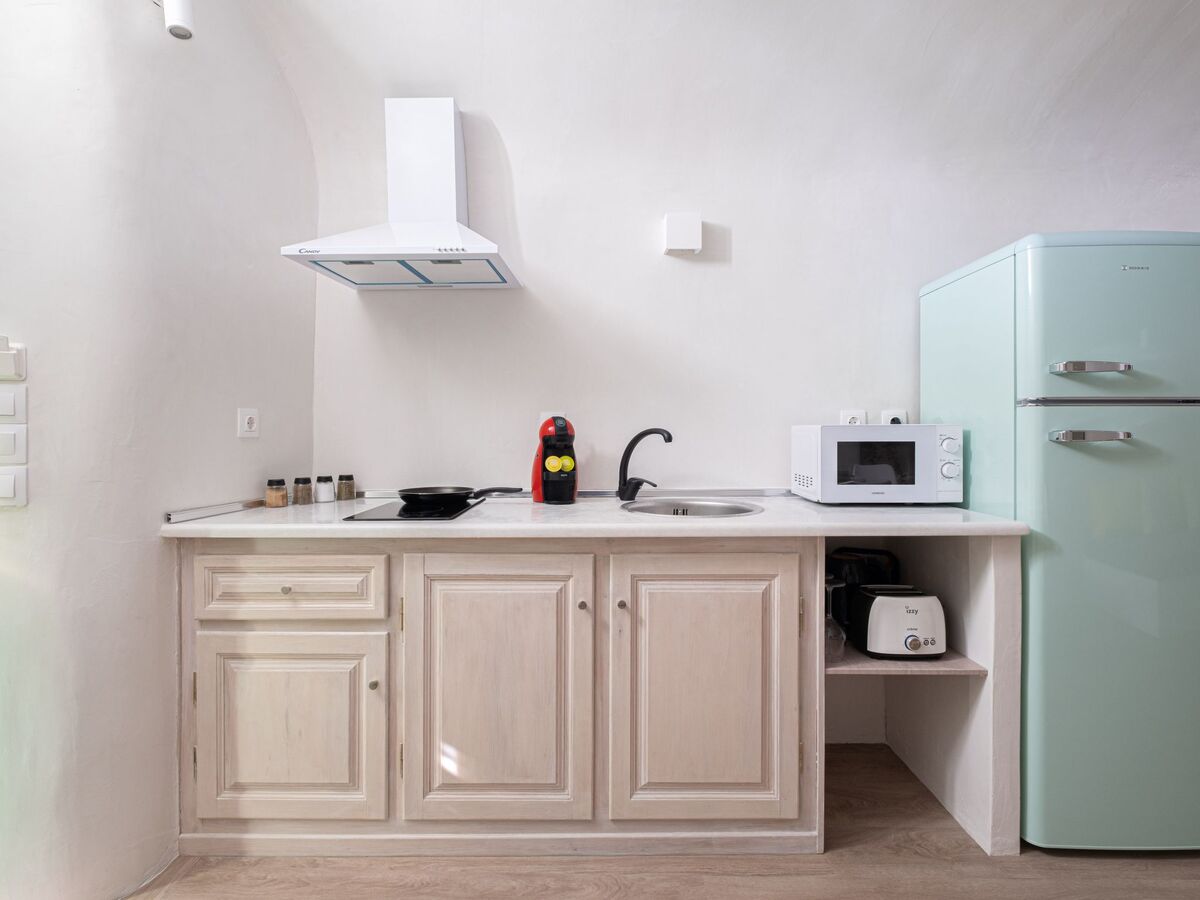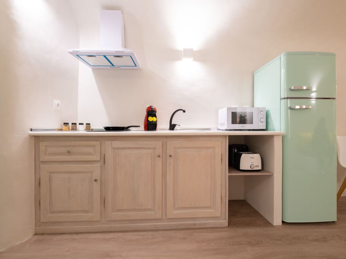 La cuisine entièrement équipée offre une atmosphère chaleureuse et familiale, parfaite pour préparer les repas ou déguster la cuisine locale.