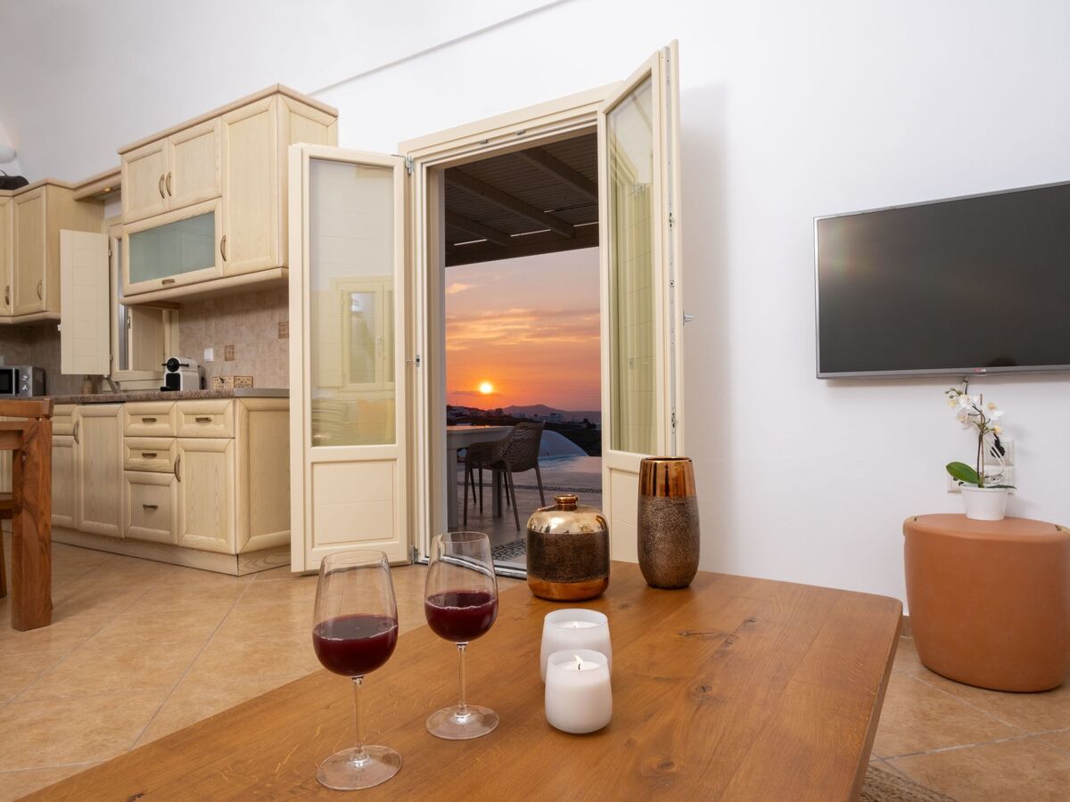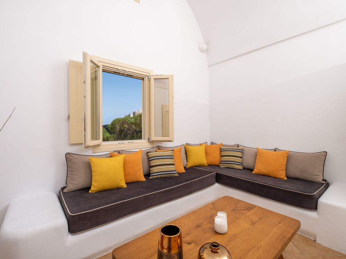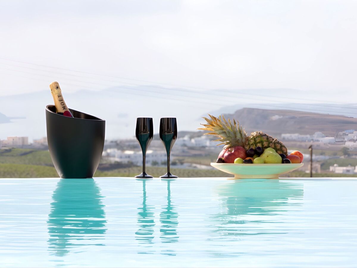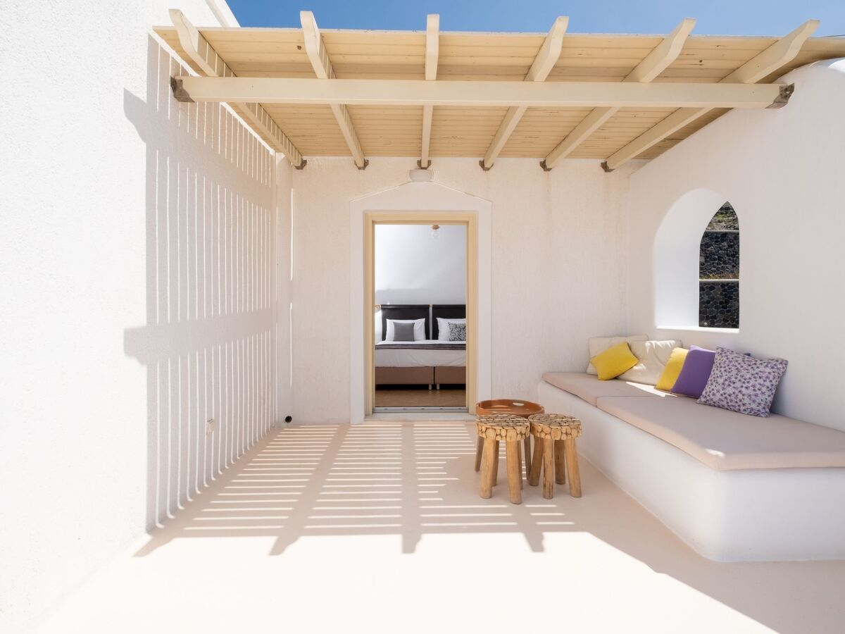 Elle dispose d'un accès direct à la piscine et d'une véranda privée avec des sièges extérieurs, offrant des vues spectaculaires sur la Caldera et la mer Égée.