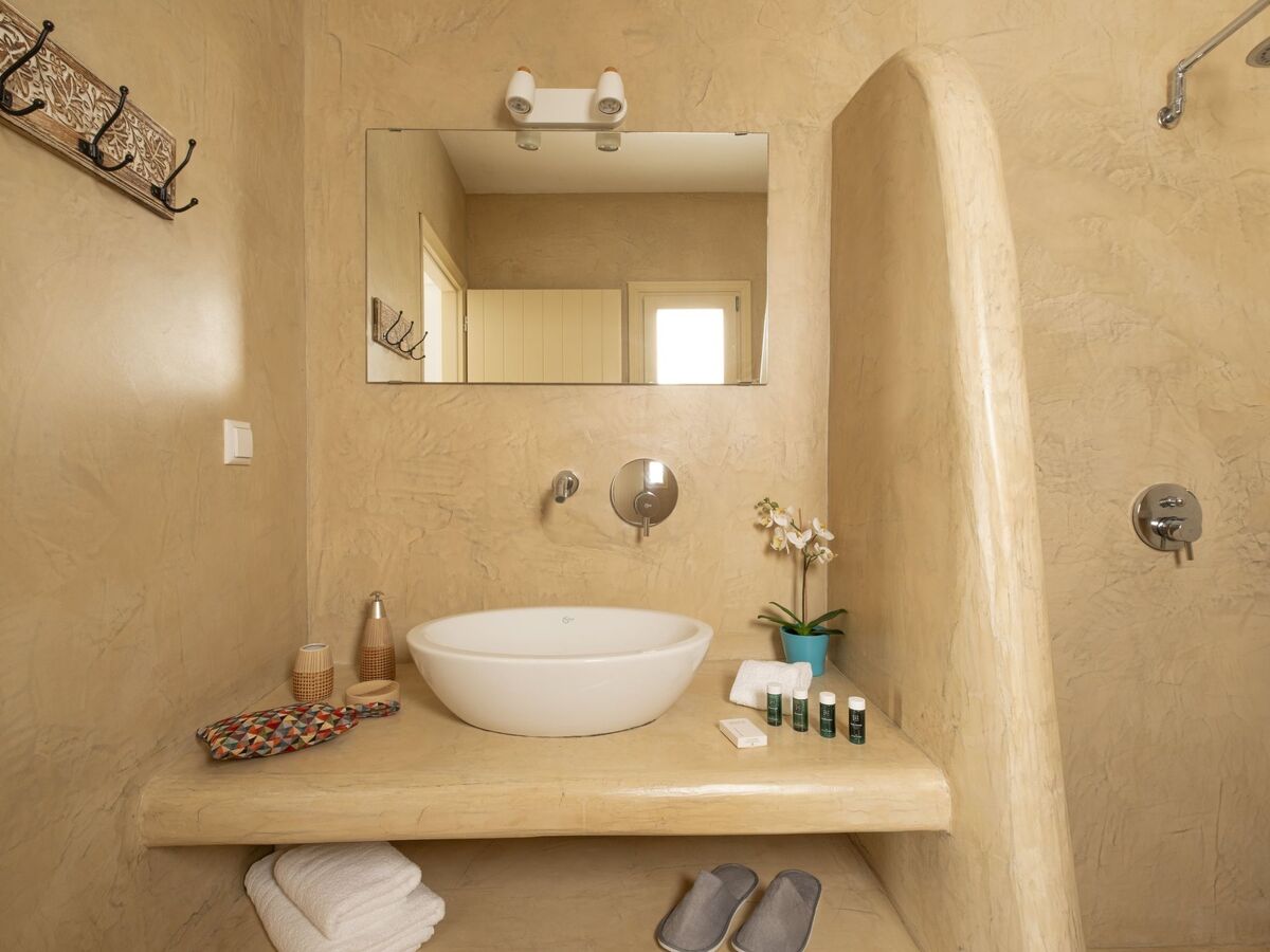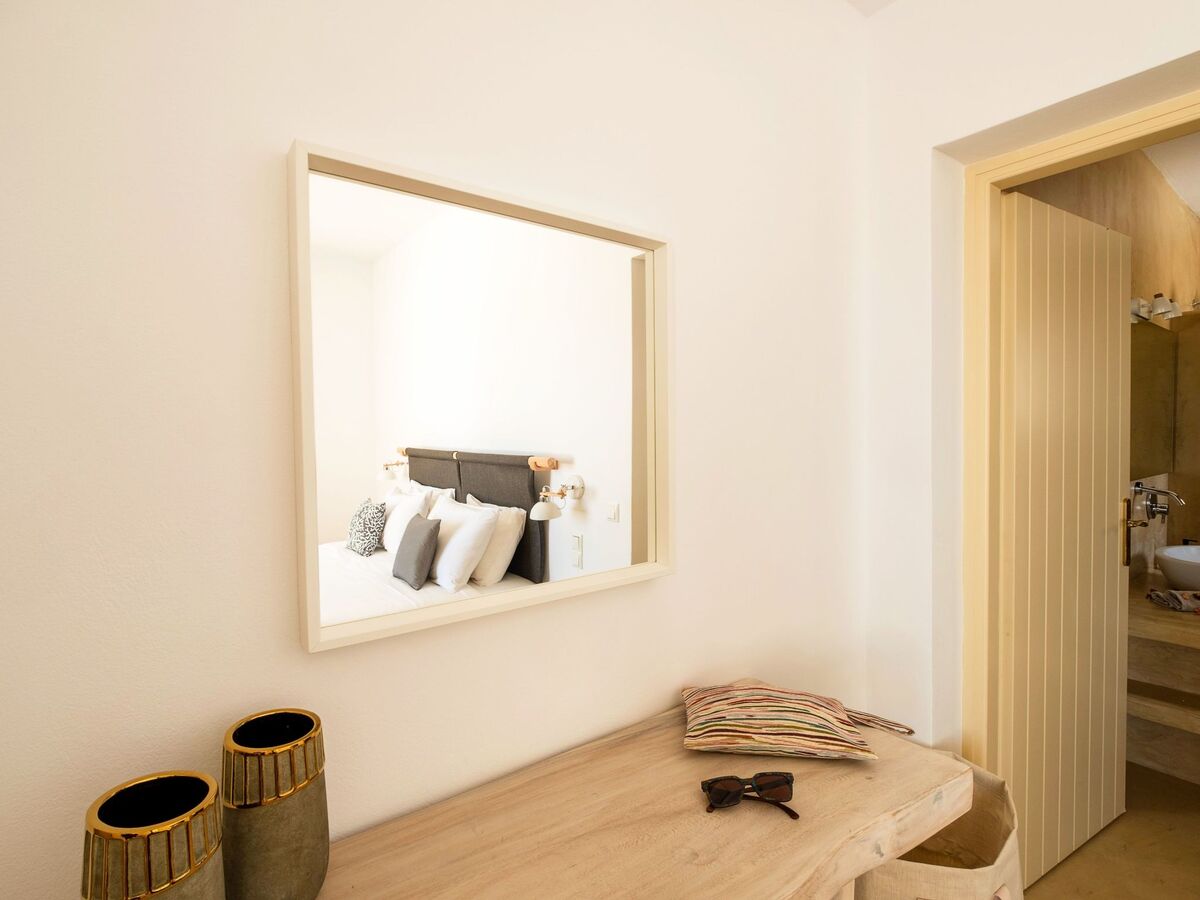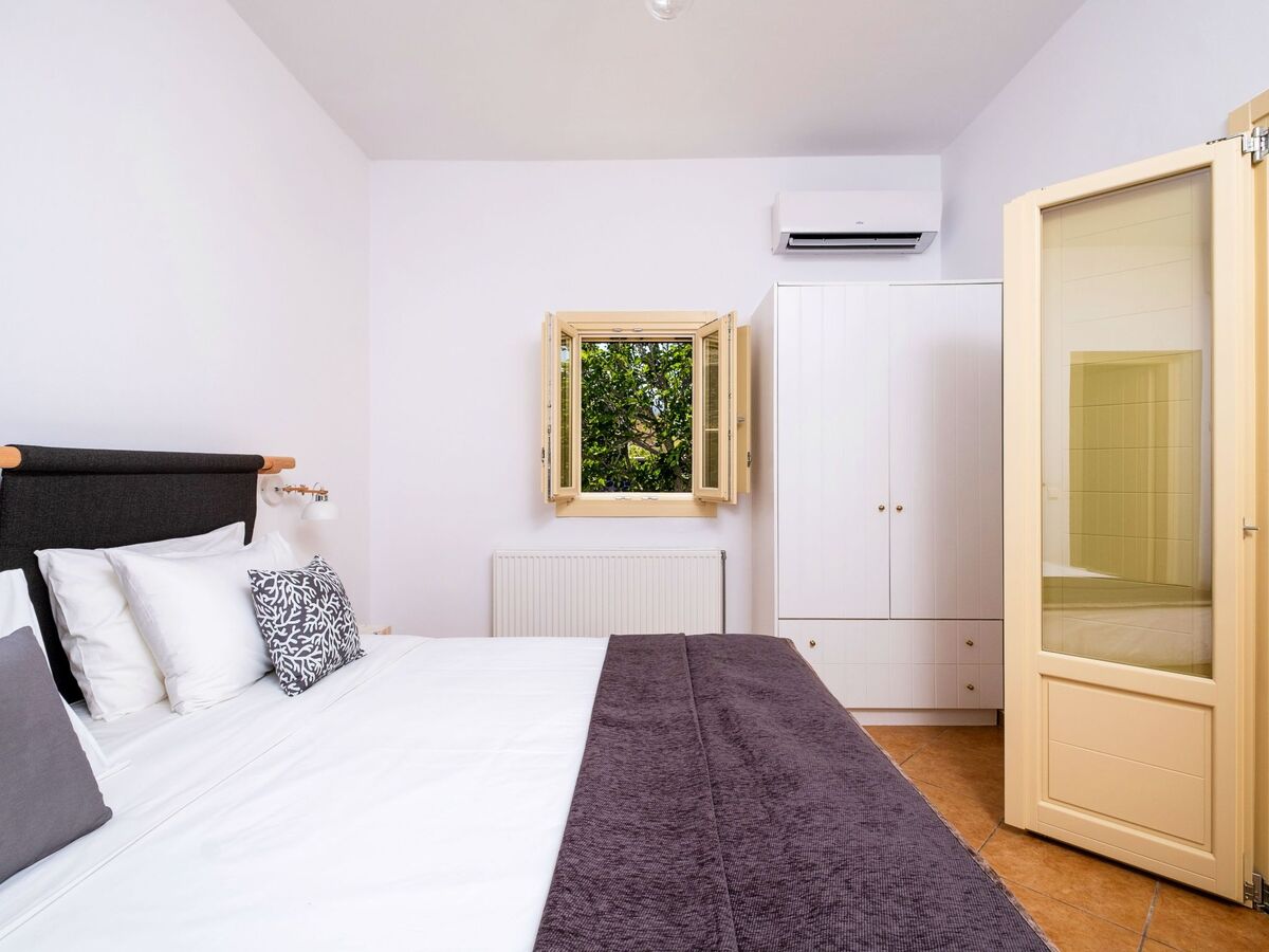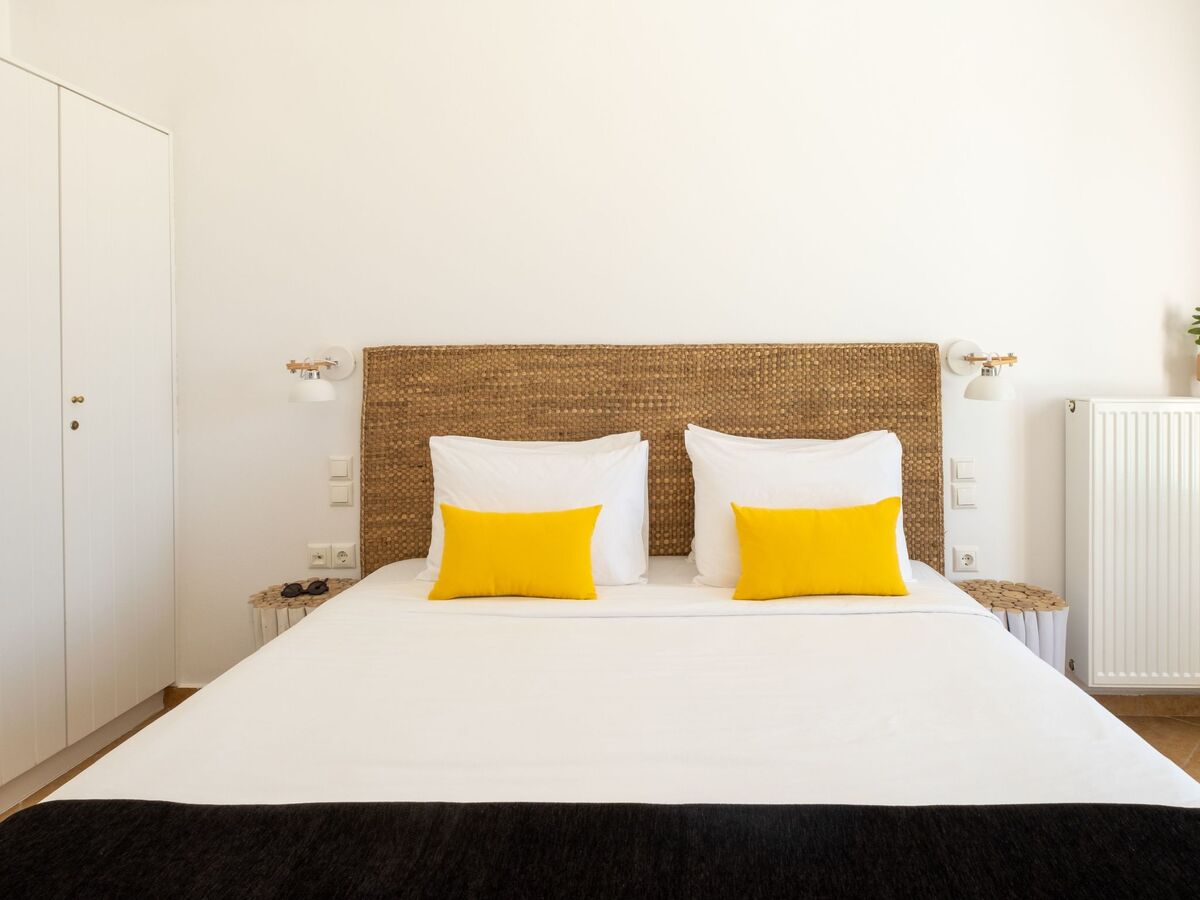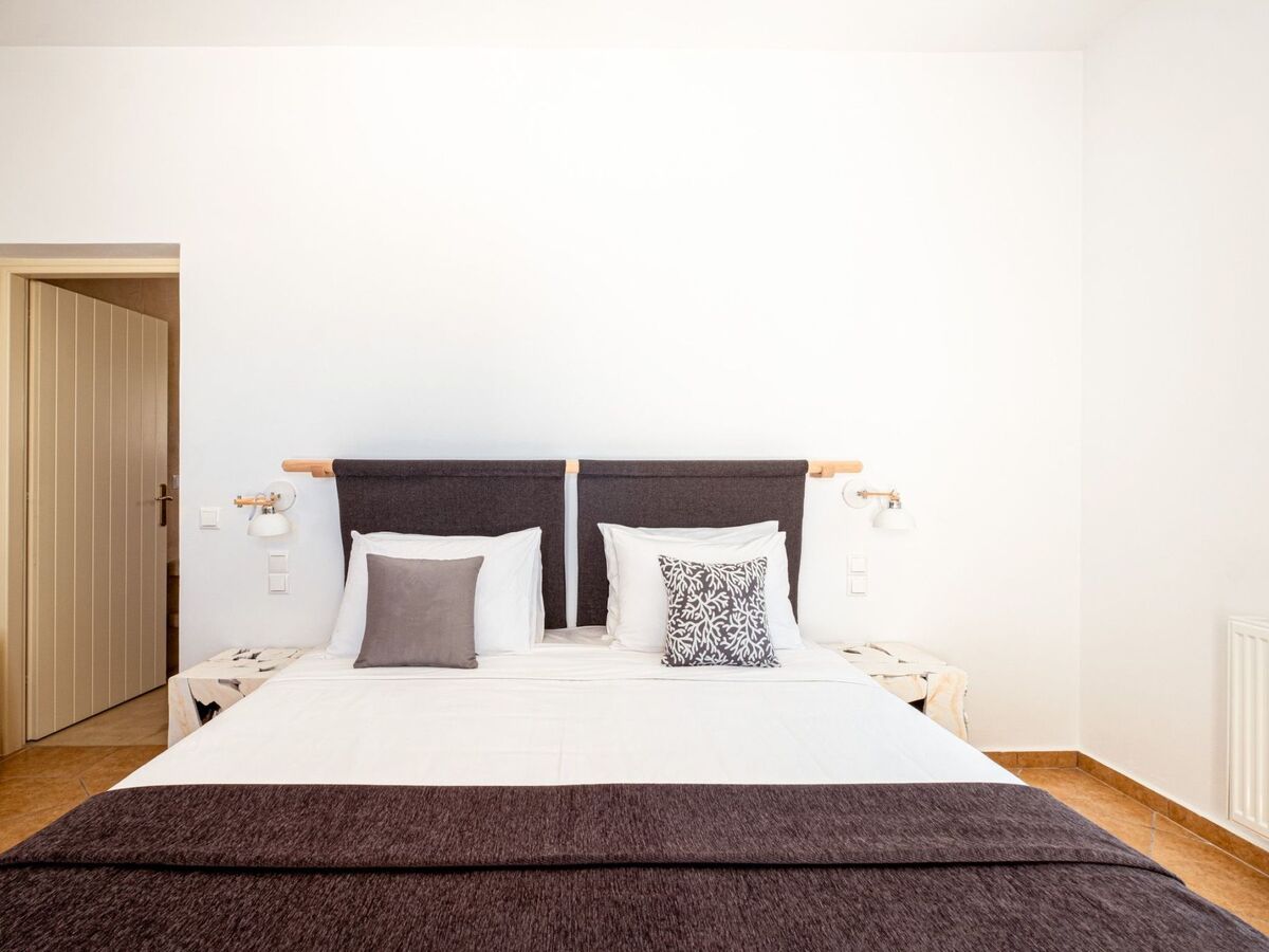 Elle dispose d'un mobilier moderne en bois clair et offre les mêmes équipements que la chambre principale, ainsi que de belles vues sur la mer Égée et le village médiéval historique de Pyrgos.