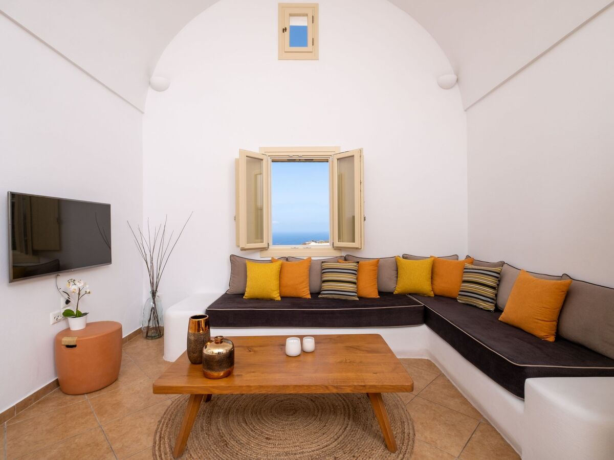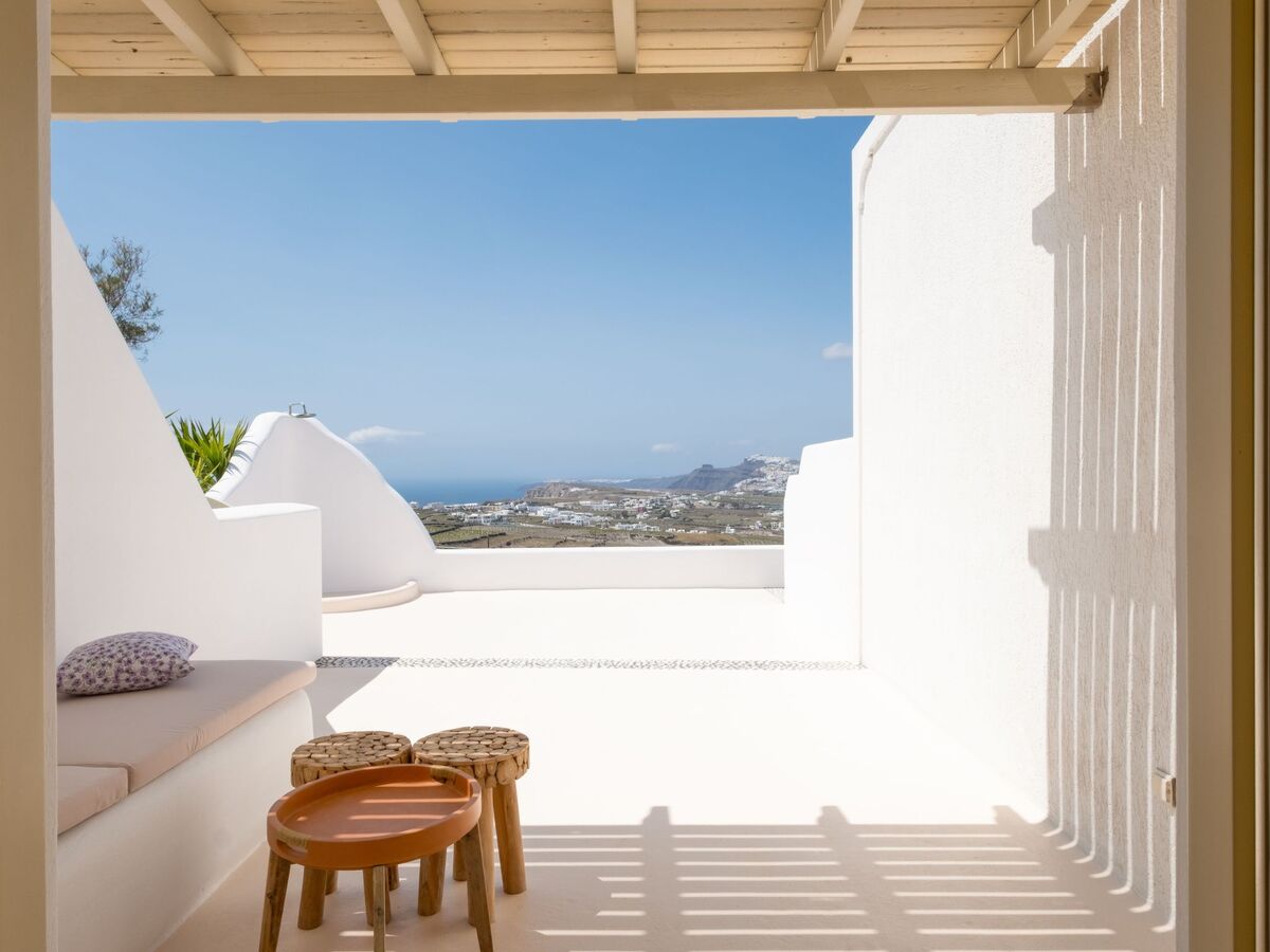 Depuis cette chambre, vous bénéficierez d'une vue imprenable sur la Caldera et la mer Égée.