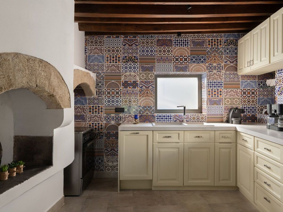 As you walk inside this unique villa, you are met by a beautifully fitted kitchen with traditional tiles.