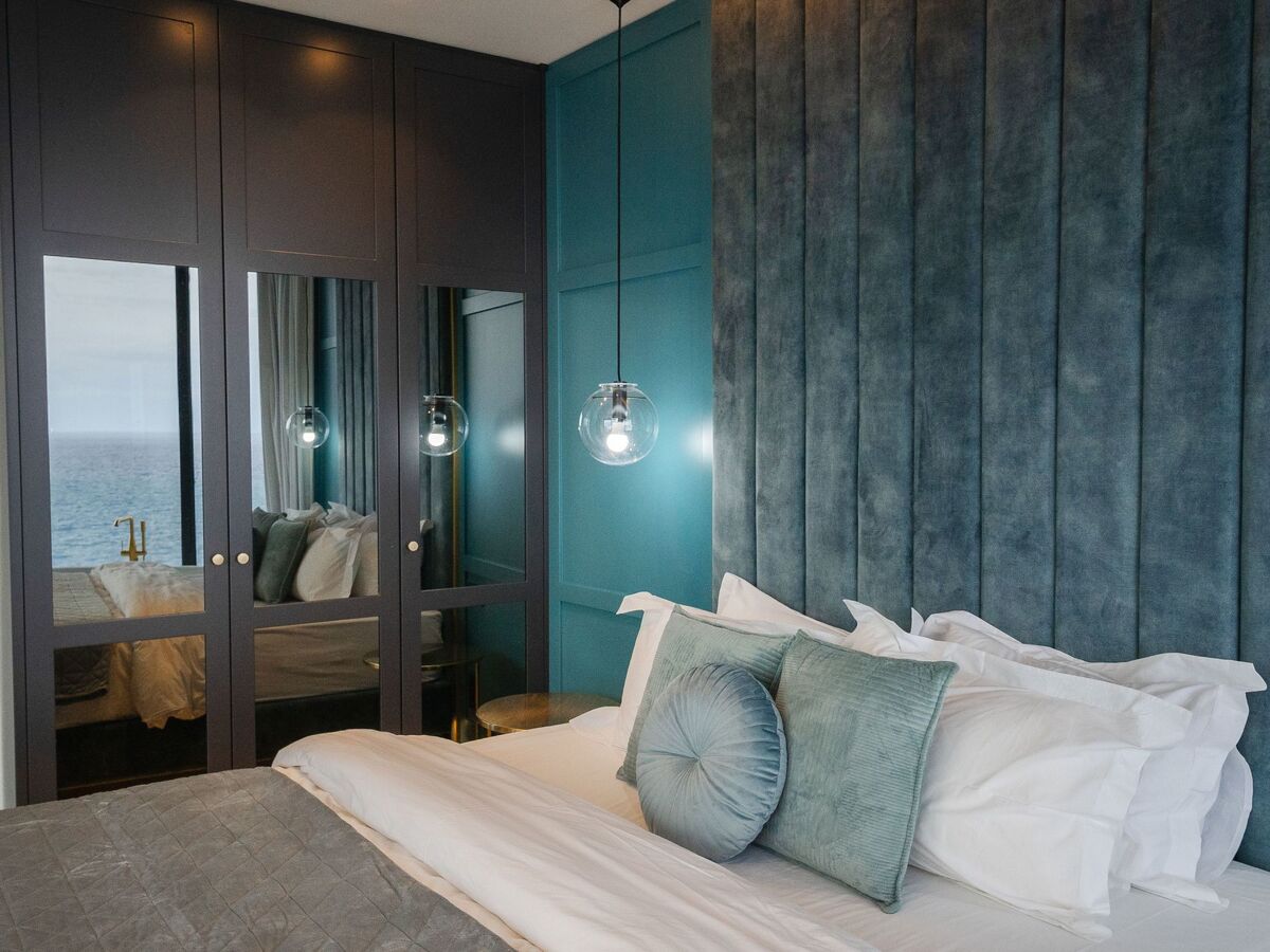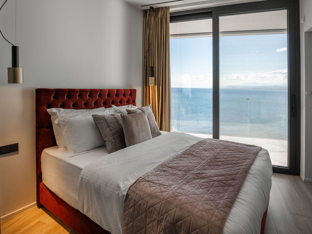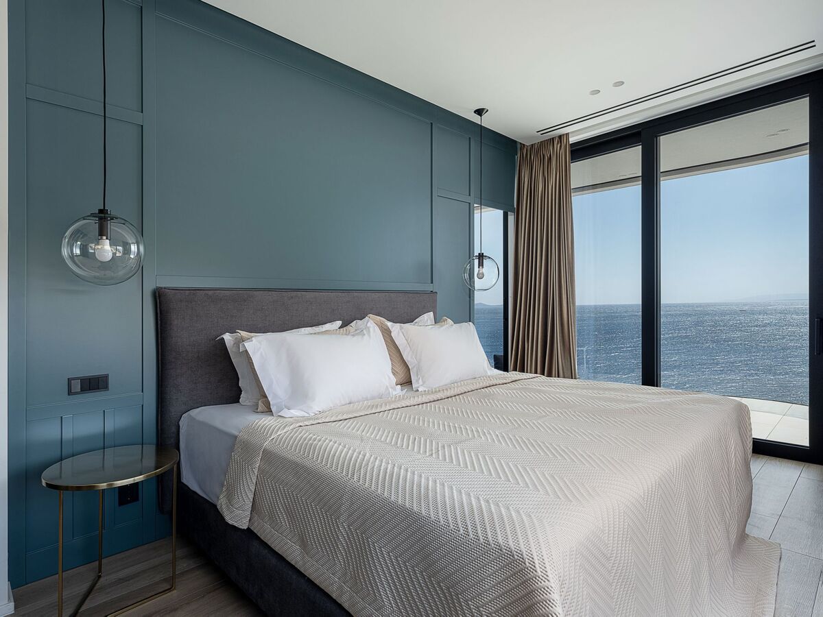 Two master bedrooms offer king-size beds, private bathrooms with luxurious bathtubs, and spectacular sea views from expansive balconies.