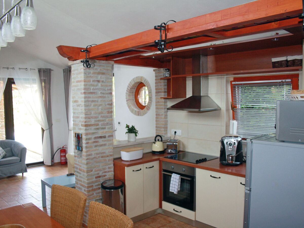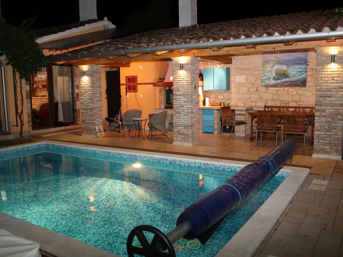 Outside, next to the pool there is a barbecue, a small kitchen, and a guest toilet.The pool is lit up by night, so it is great for some romantic and relaxed evenings.