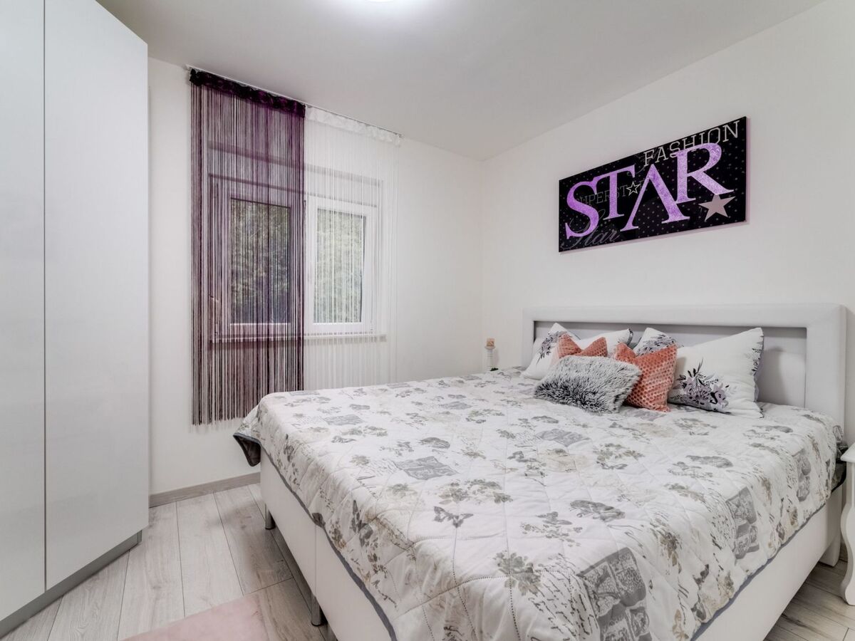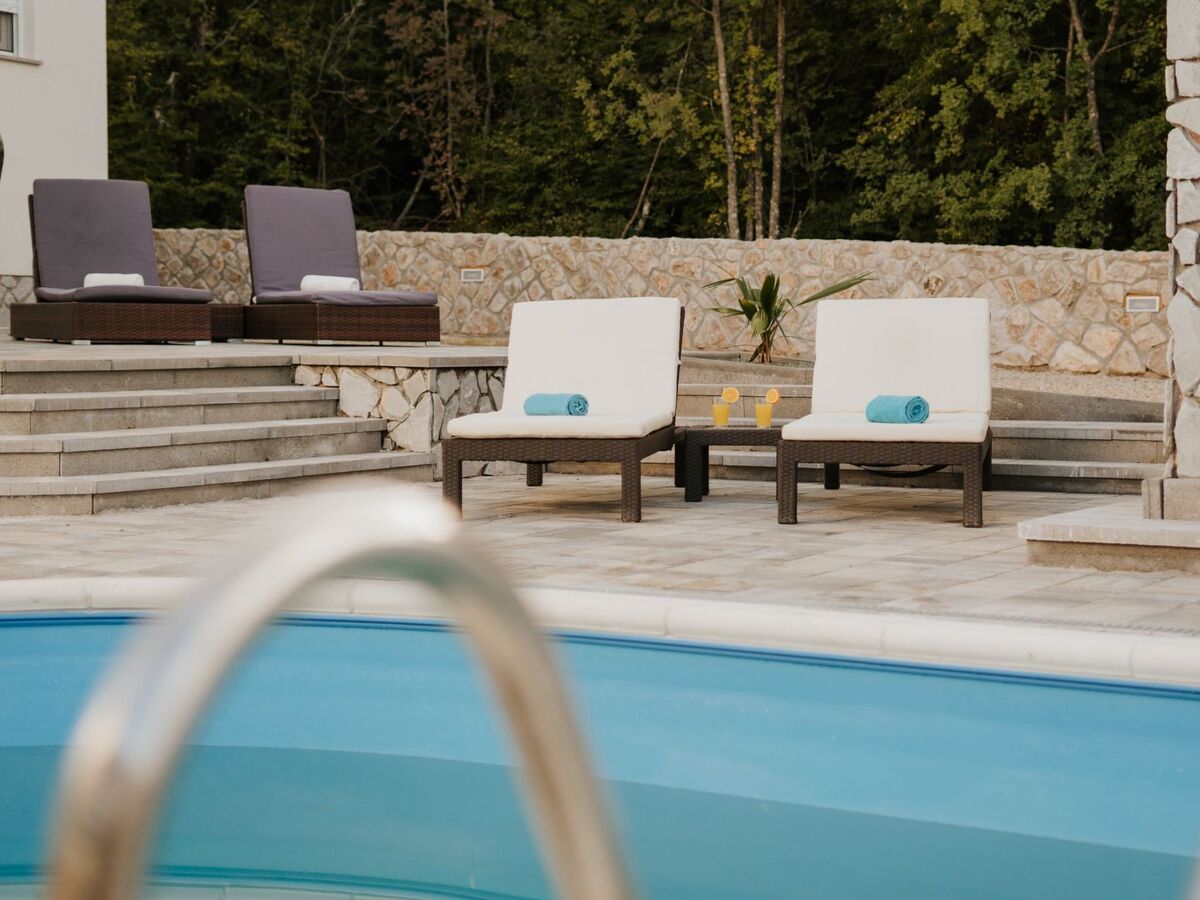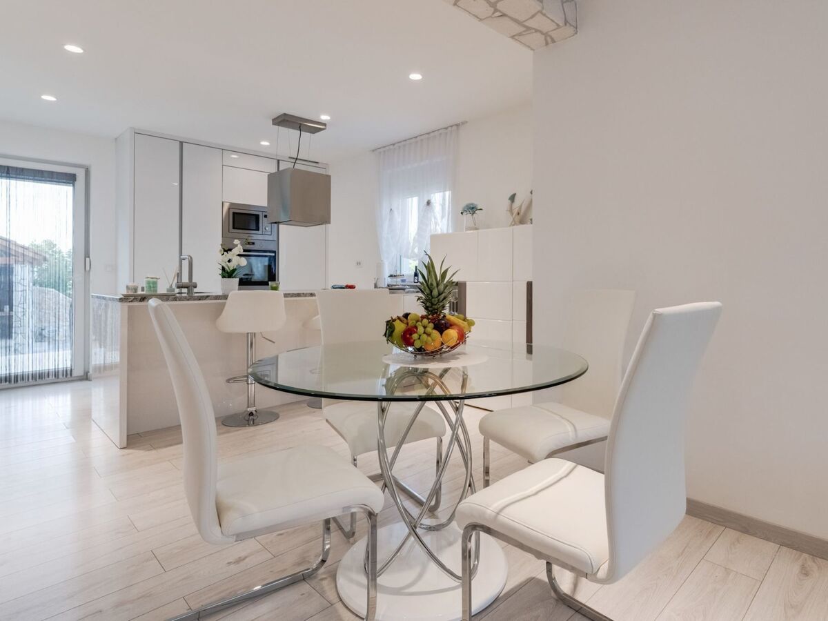 In a small village on the island of Krk, in the greenery, overlooking the sea, is located this new holiday villa.The villa has 200 m2, 4 bedrooms, 4 bathrooms and a separate toilet.On the ground floor of the villa there is an apartment with two bedrooms, living room, dining room, 1 bathroom and toilet.