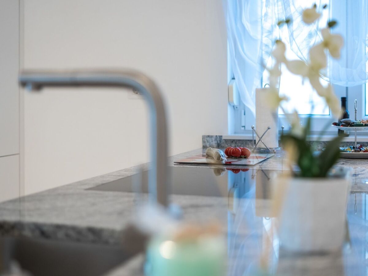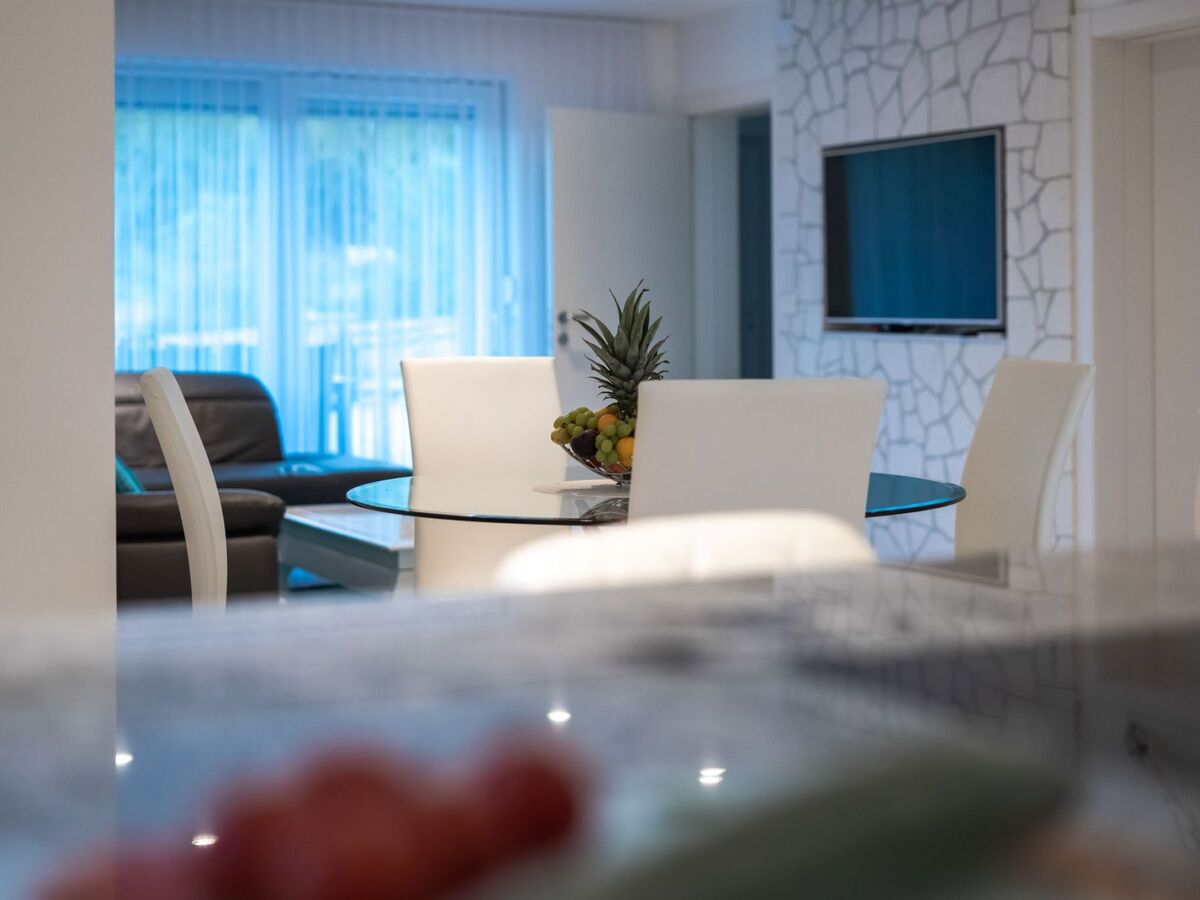 Each apartment has one bedroom with double bed, bathroom, kitchen and living room.The apartments have air conditioning, which is located in each apartment in the living room.The living room on the ground floor opens onto a terrace with pool, deck chairs, covered terrace with seating and barbecue, where you can enjoy with family and friends.