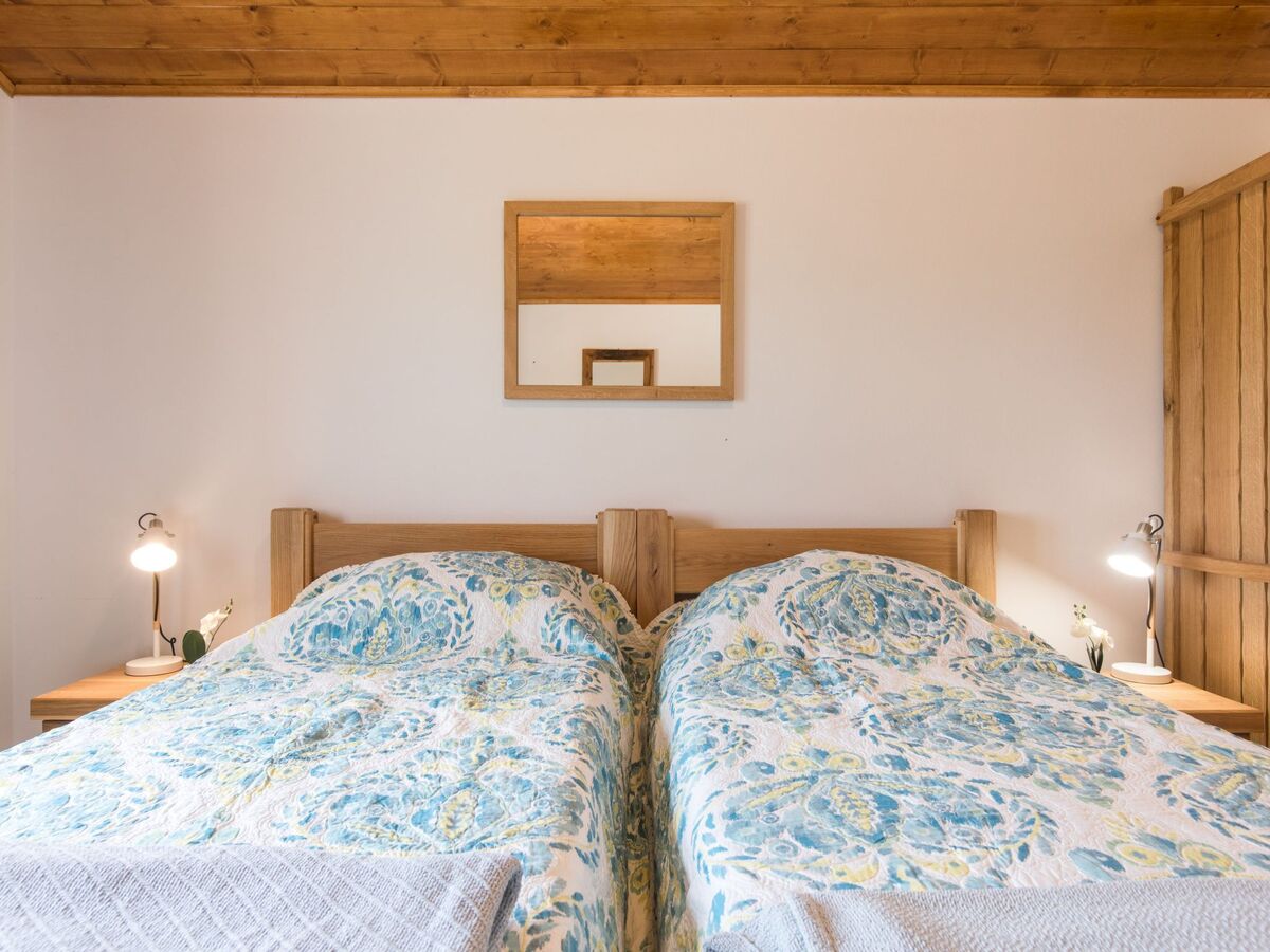 It has a charming living room with two separate beds, a kitchen/dining area, a full bathroom and a large bedroom overlooking a swimming pool.