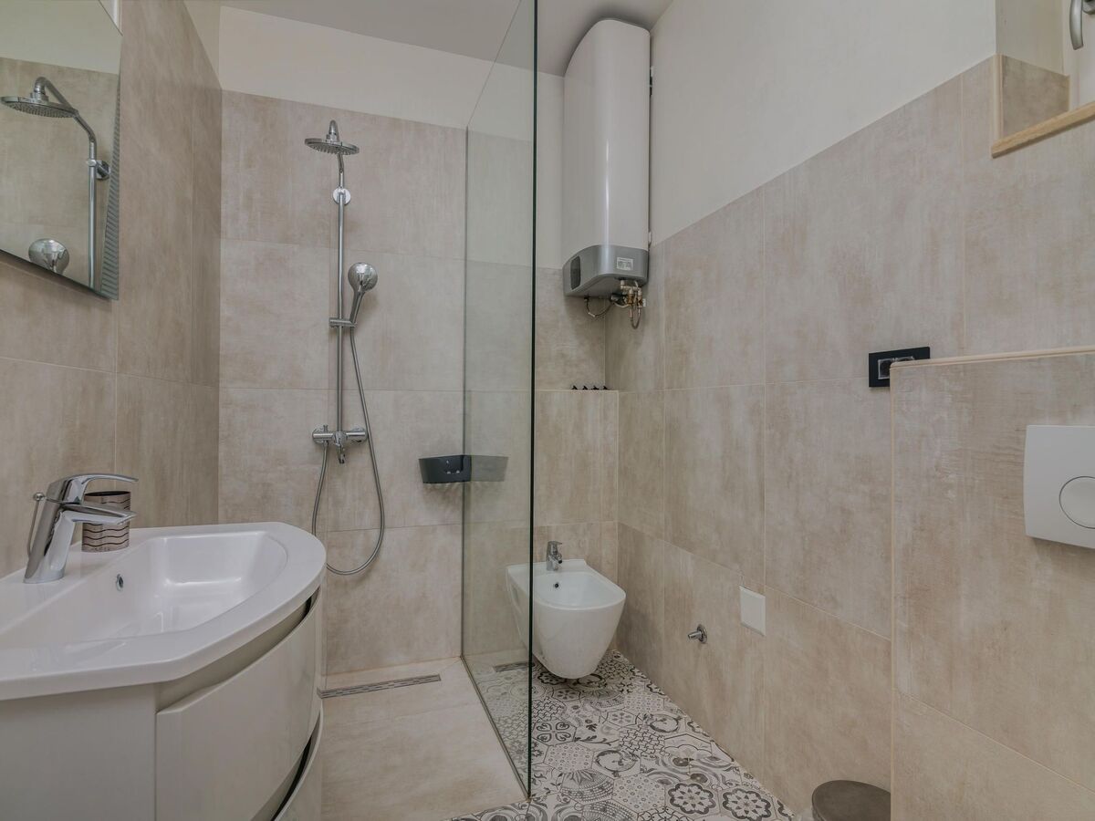 On the ground floor of the villa, there are two bedrooms, two bathrooms with shower, an additional toilet, and a spacious living room with kitchen and dining room.