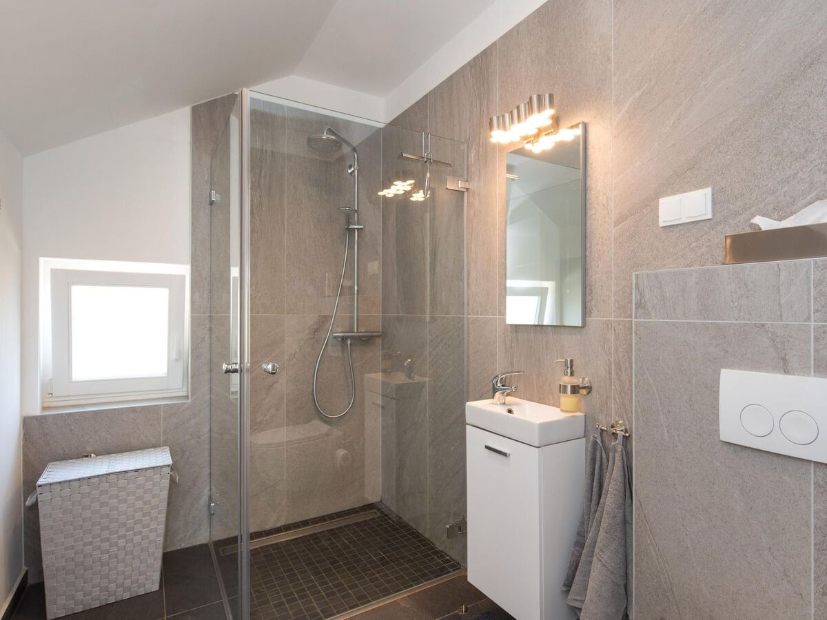 The upper floor, connected to an internal staircase, has 2 double bedrooms, another bedroom with a single bed with pull-out possibility and an additional bathroom with shower and bathtub.
