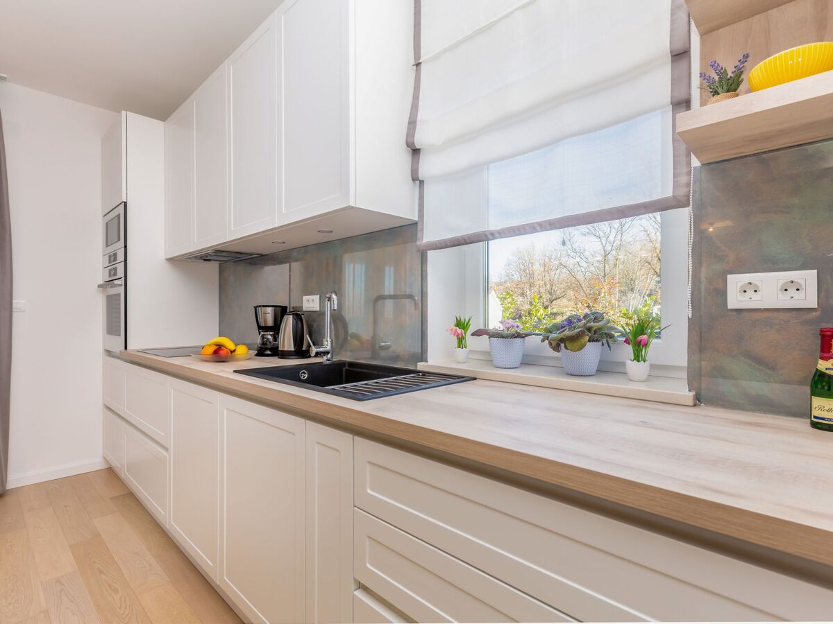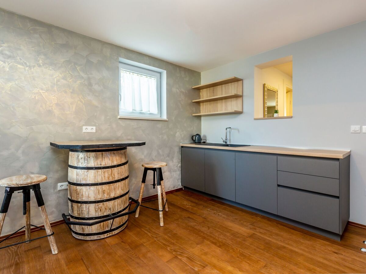 On the ground floor of the villa there is a spacious living room with a extendable couch and a fully furnished kitchen with all necessary appliances (refrigerator, freezer, toaster, microwave, coffee maker, etc.).