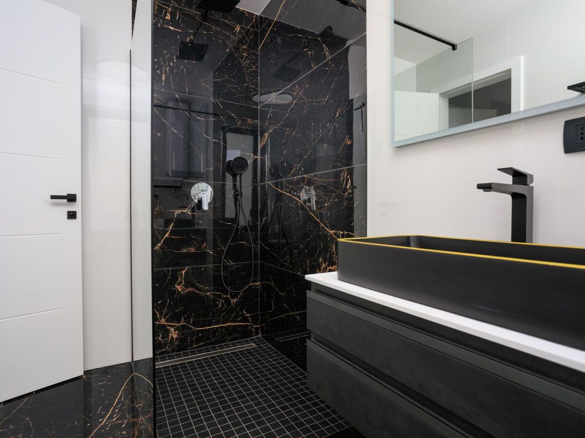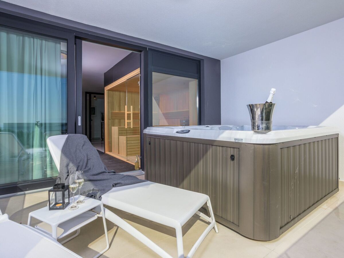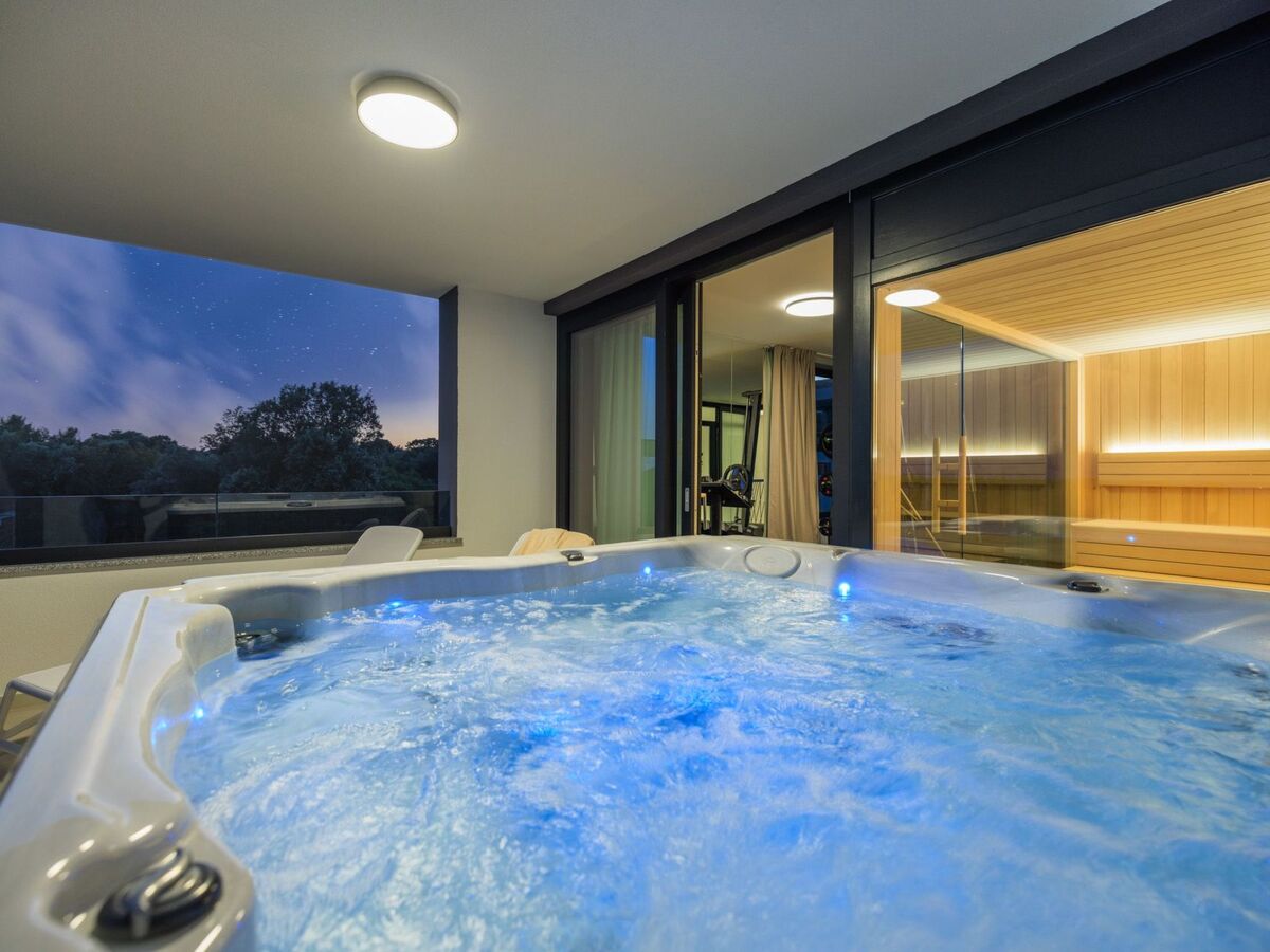 On the first floor there are two bedrooms with bathrooms, while on the second floor there is a bedroom with bathroom, gym, sauna and whirlpool.