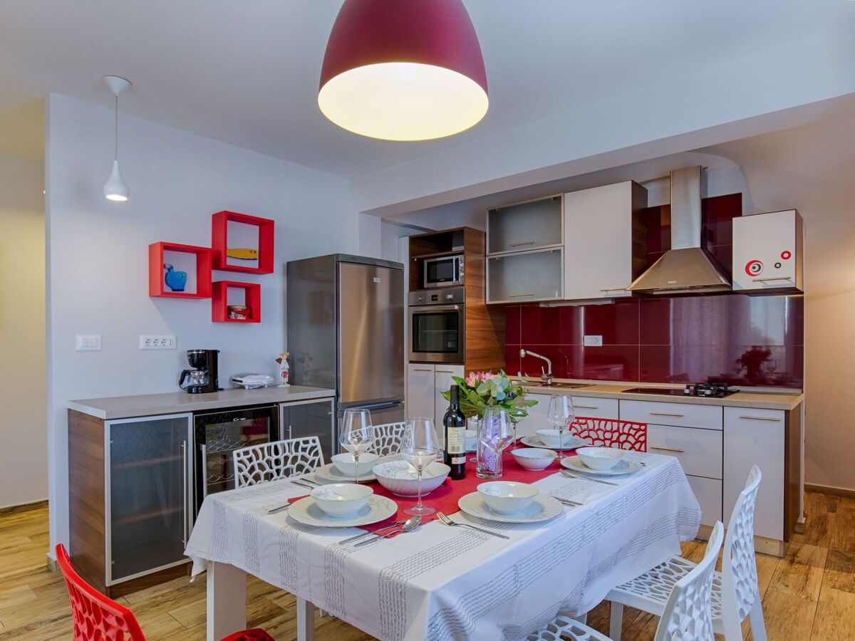 On the ground floor there is a dining room, fully equipped kitchen (dishwasher, microwave, toaster, coffee machine) a bathroom and one room with a double bed