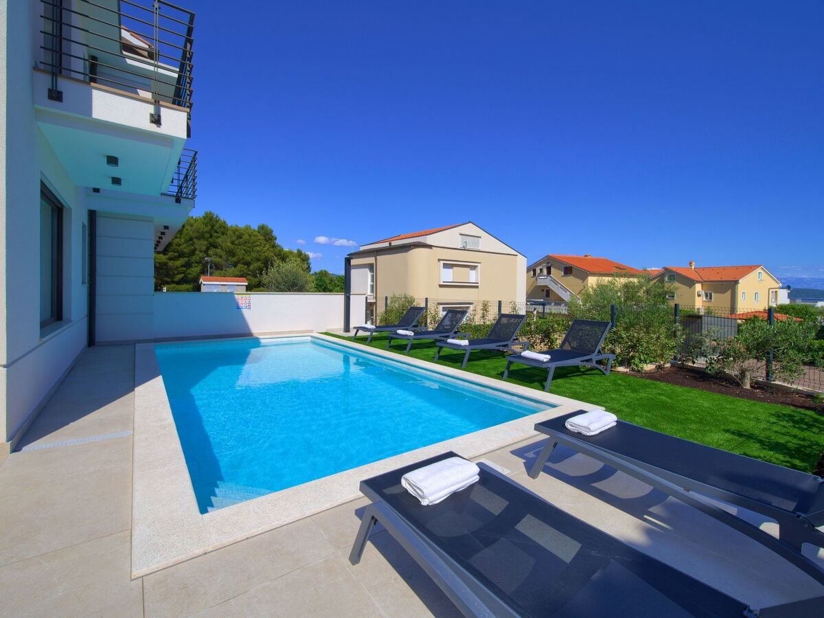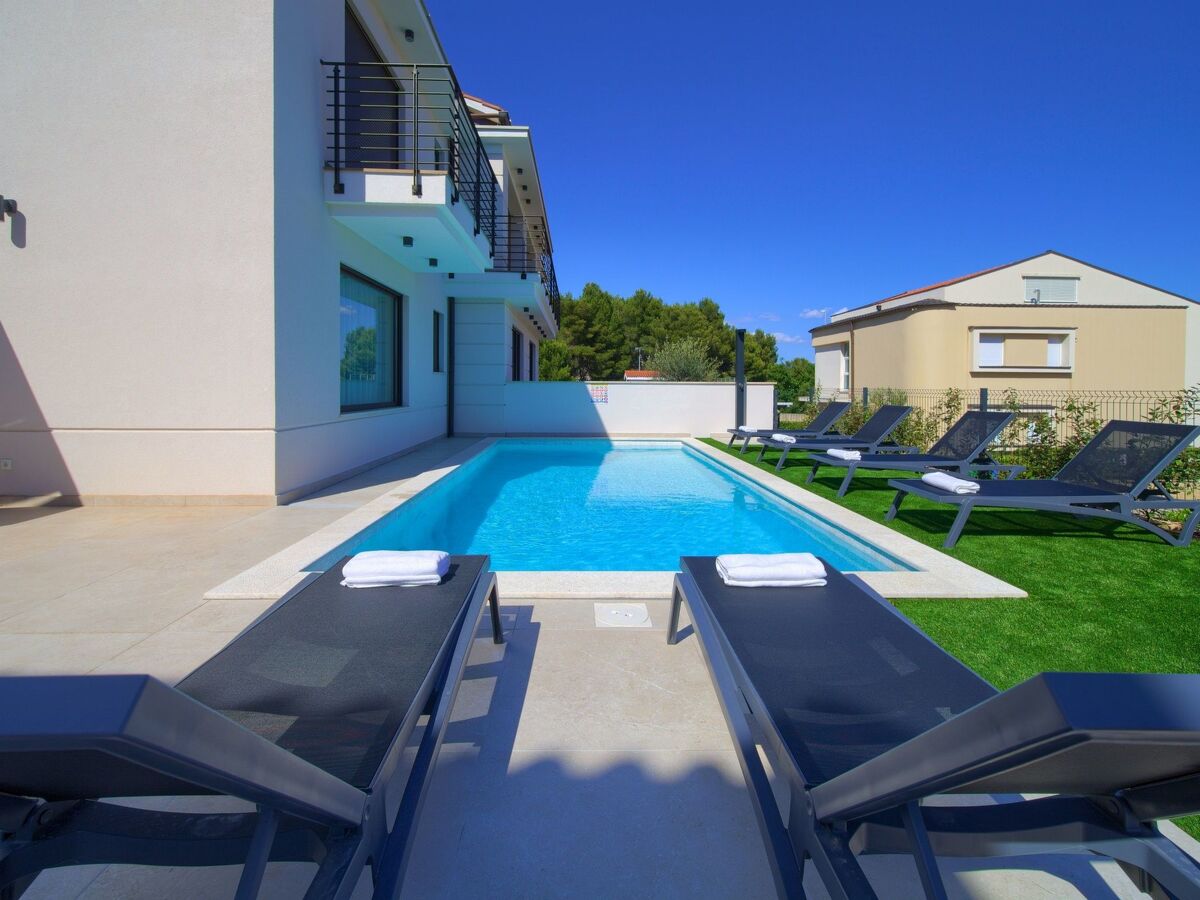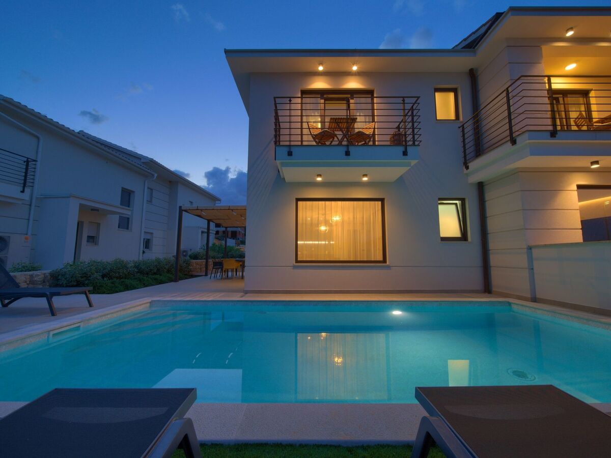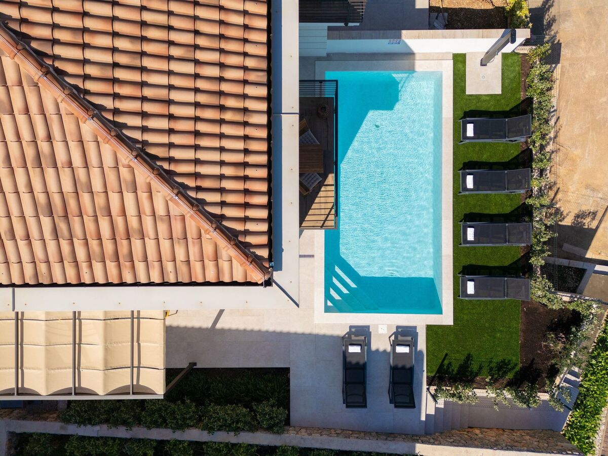 At the heart of the outdoor space, the swimming pool invites you to take a refreshing dip, lounge on the deck chairs, or gather around for memorable moments.