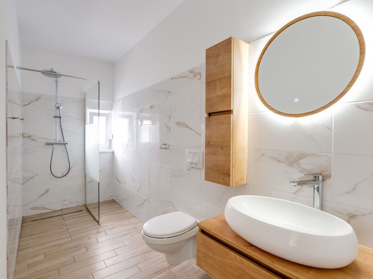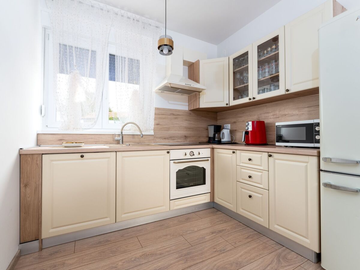 On the ground floor of the villa is situated a spacious living room (with sofa bed for 2 persons), a fully equipped kitchen (dishwasher, microwave, toaster, coffee maker), one bedroom and bathroom.