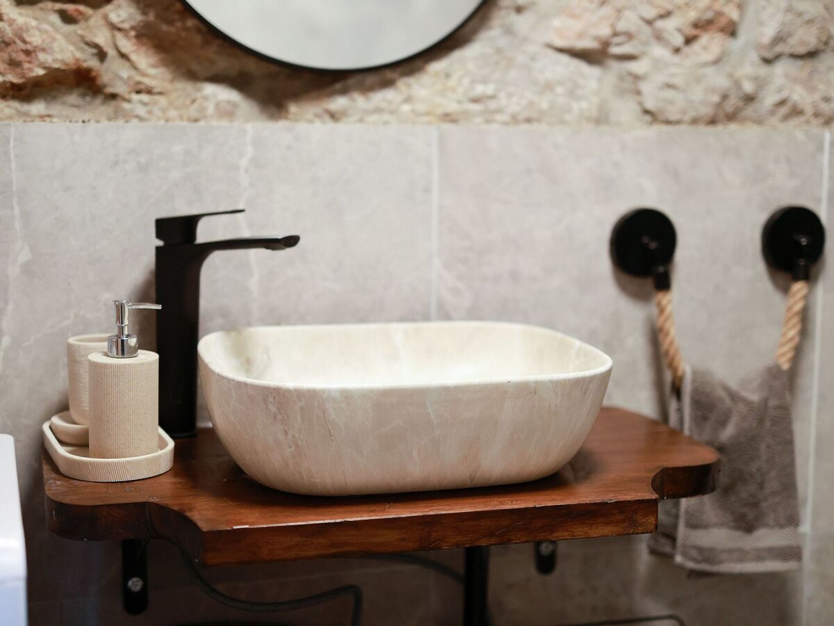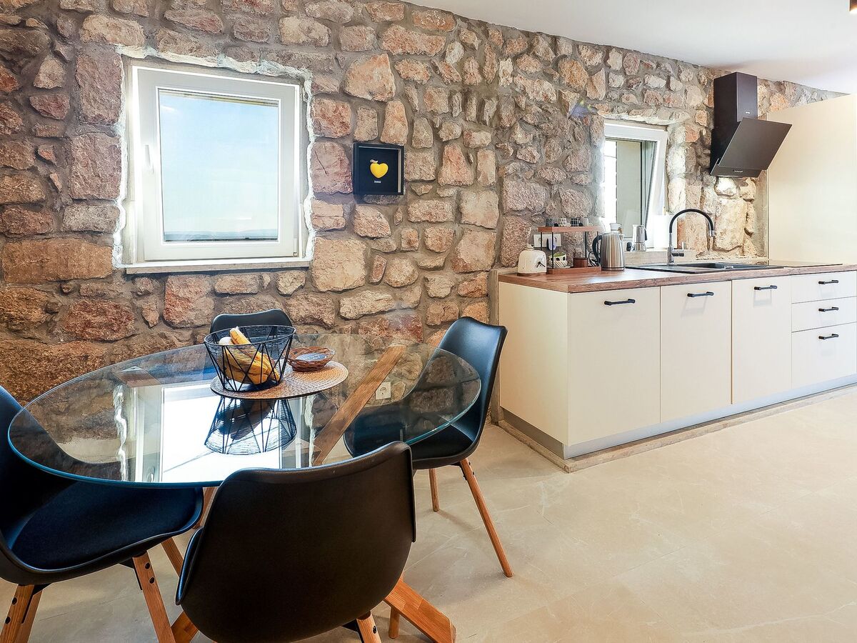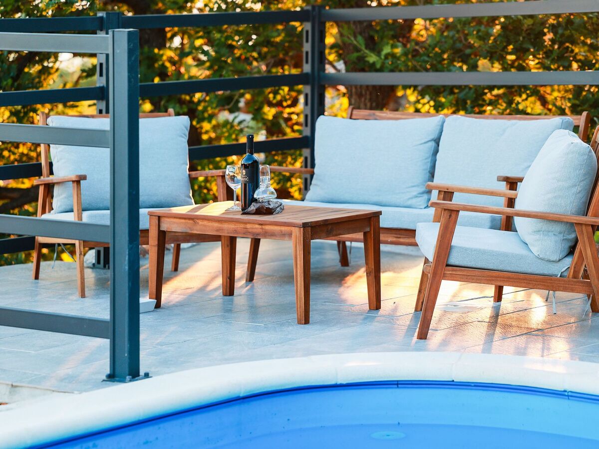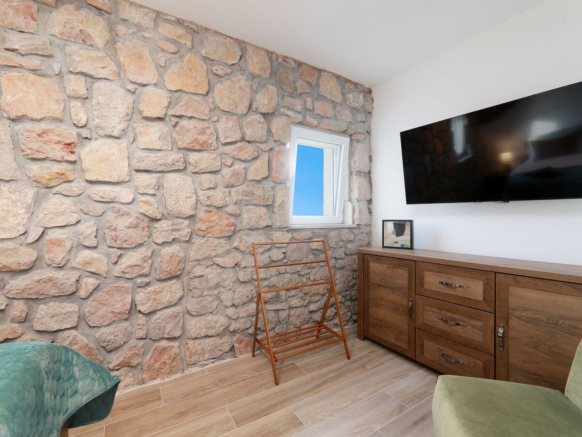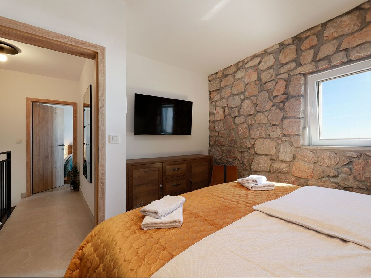 Outside, on the 340 m² private property, guests can enjoy swimming pool, a sunbathing area with loungers and umbrellas, a traditional tavern (konoba) with table football and darts, an outdoor fireplace equipped for barbecuing and traditional cooking under the bell (“ispod peke”), and a covered lounge area.